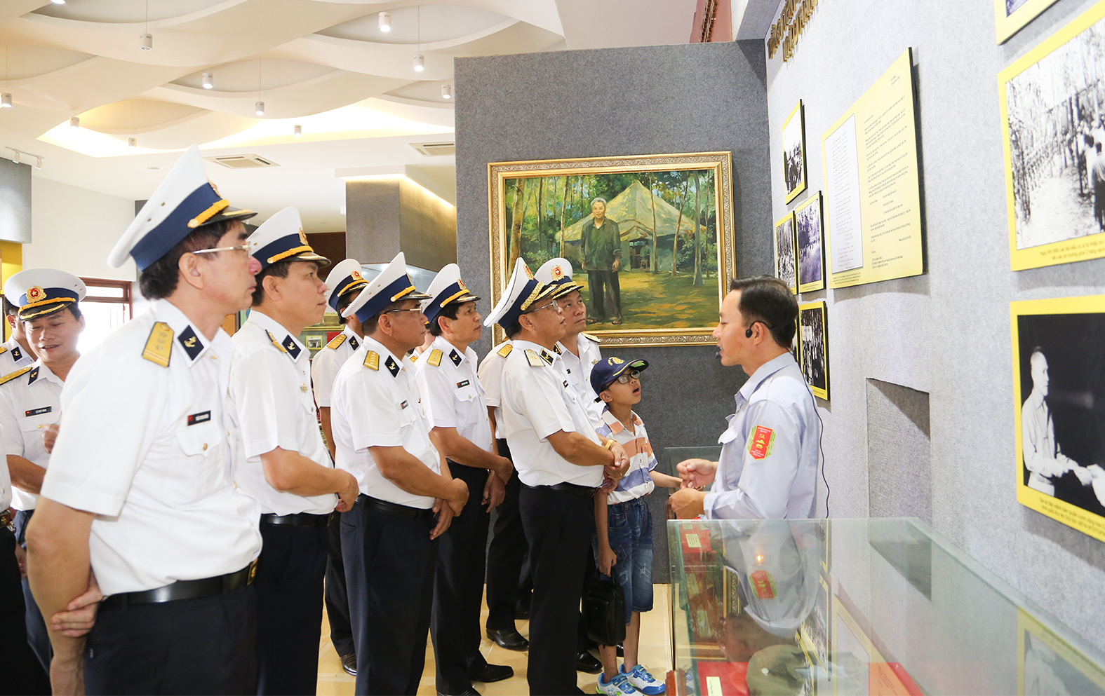 Chuẩn Đô đốc Phạm Văn Vững tặng Khu di tích lịch sử Căn cứ TWCMN bức ảnh Chiến sĩ Hải quân bảo vệ chủ quyền biển, đảo