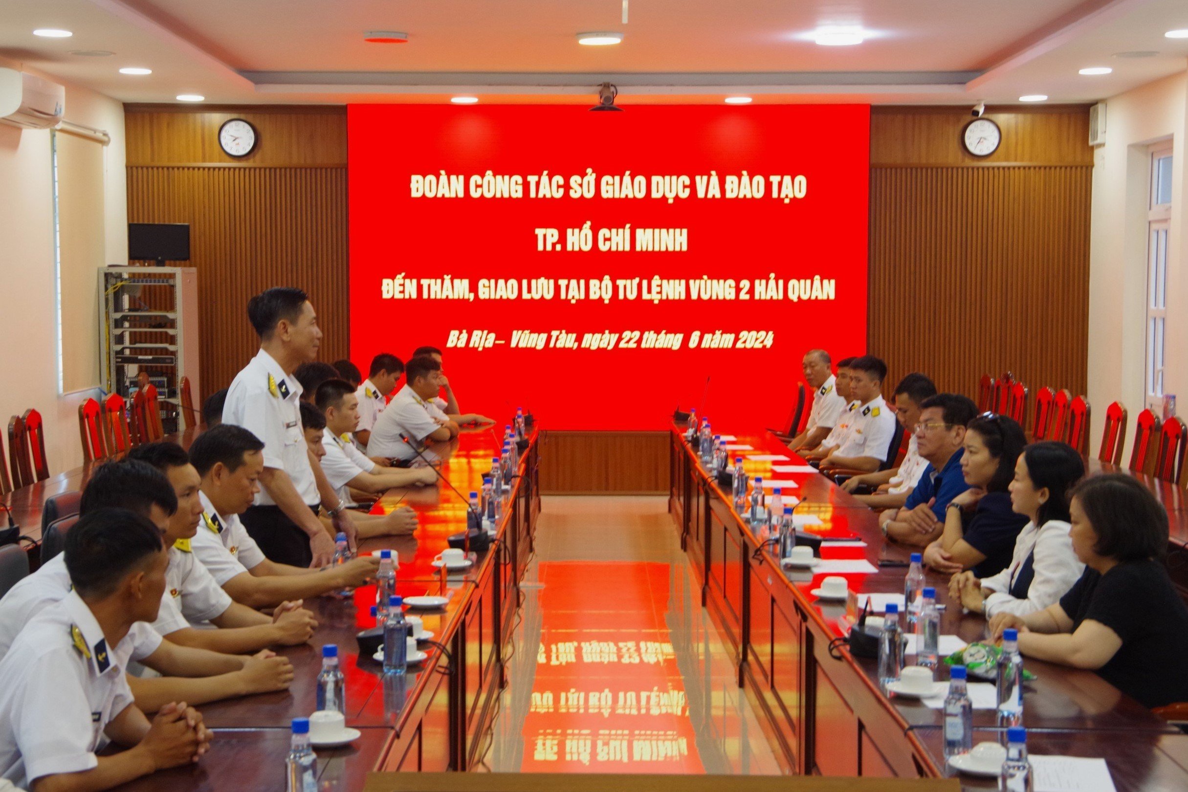 Chiều 22/6, tại TP. Vũng Tàu, tỉnh Bà Rịa - Vũng Tàu, đoàn công tác của Sở Giáo dục và Đào tạo Thành phố Hồ Chí Minh đã đến thăm, giao lưu với cán bộ, chiến sĩ Vùng 2 Hải quân. Đại tá Đỗ Hồng Duyên, Phó Chính ủy Vùng 2 chủ trì tiếp đoàn.