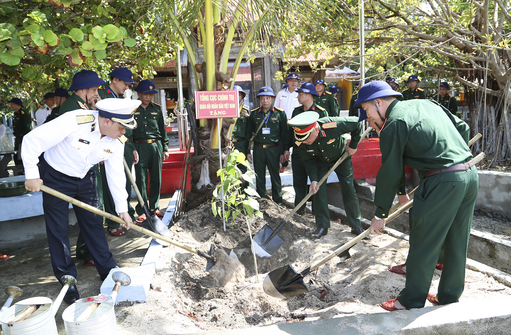 Đoàn công tác trồng cây lưu niệm trên đảo Nam Yết
