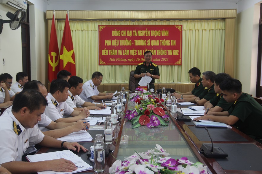Sáng 16/5, tại Hải Phòng, đoàn công tác của Trường Sĩ quan Thông tin do Đại tá Nguyễn Trọng Vĩnh, Phó Hiệu trưởng nhà trường làm trưởng đoàn đã đến thăm và làm việc với Lữ đoàn 602, Bộ Tham mưu Hải quân.