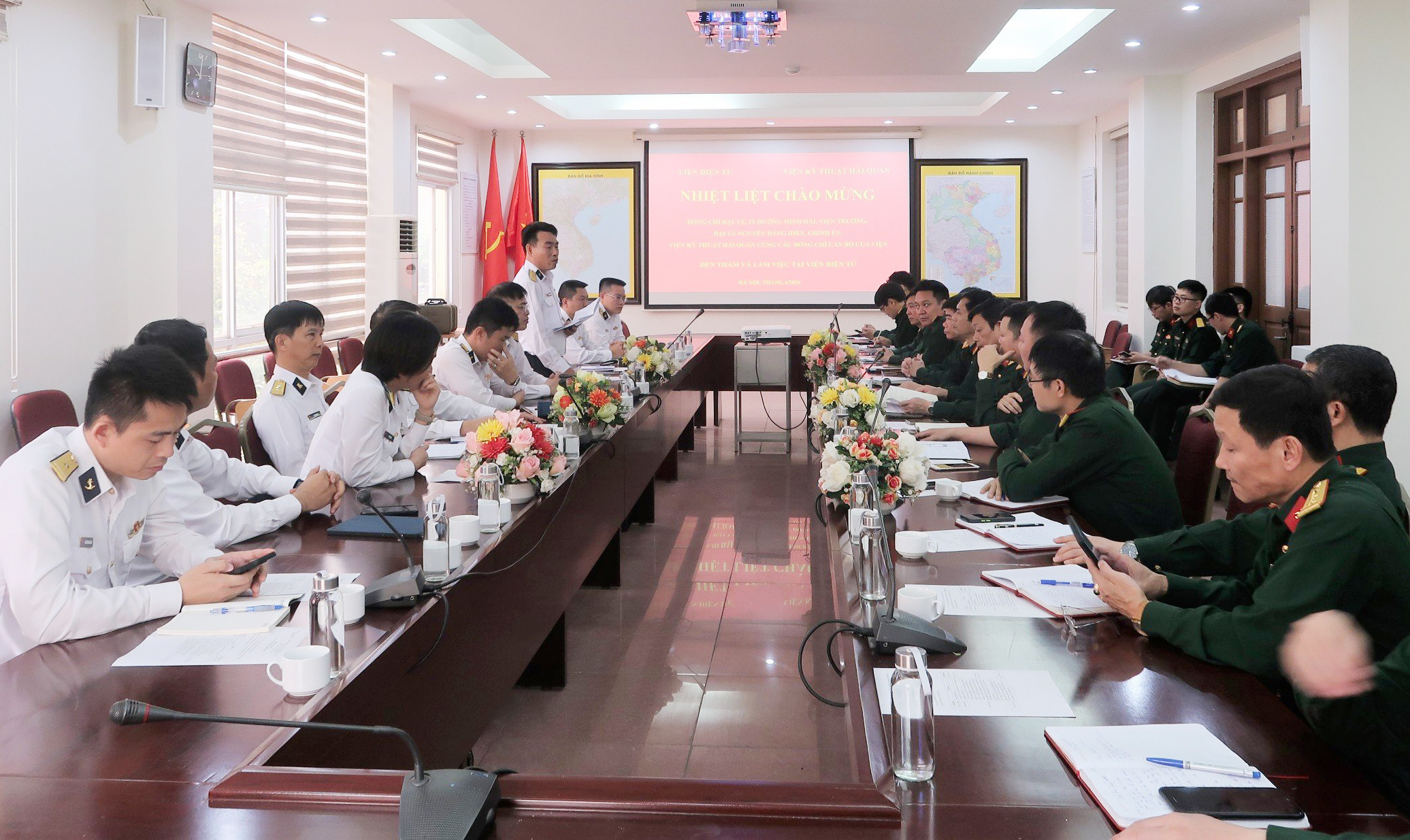 Ngày 4/4, tại Hà Nội, đoàn công tác của Viện Kỹ thuật Hải quân do Đại tá, Tiến sĩ Dương Minh Hải, Viện trưởng làm trưởng đoàn đã có buổi làm việc với Viện Điện tử thuộc Viện Khoa học Công nghệ Quân sự. Đại tá, Tiến sĩ Vũ Lê Hà, Viện trưởng chủ trì tiếp đoàn.