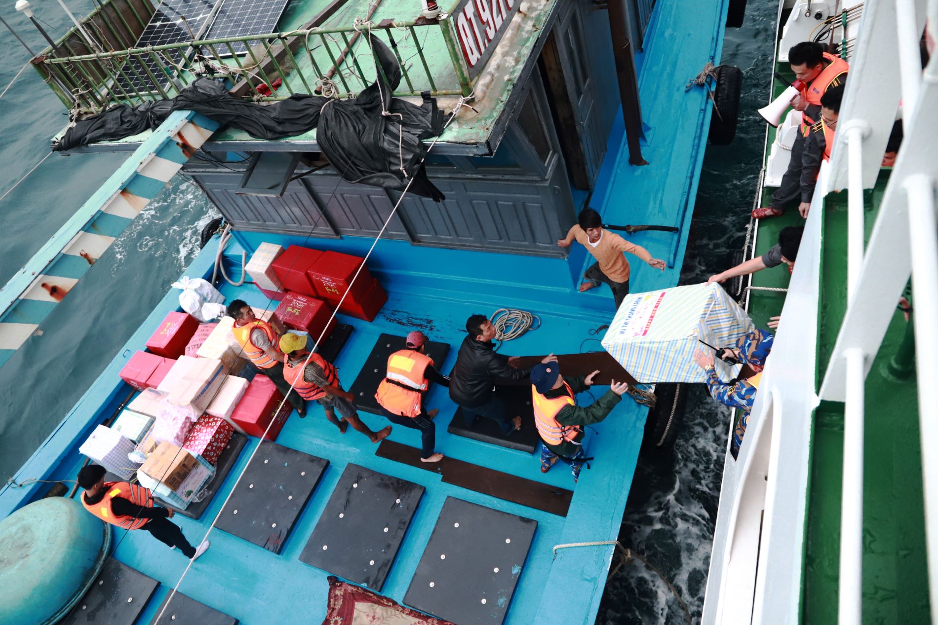 Vận chuyển quà xuống thuyền để chuyển vào đảo
