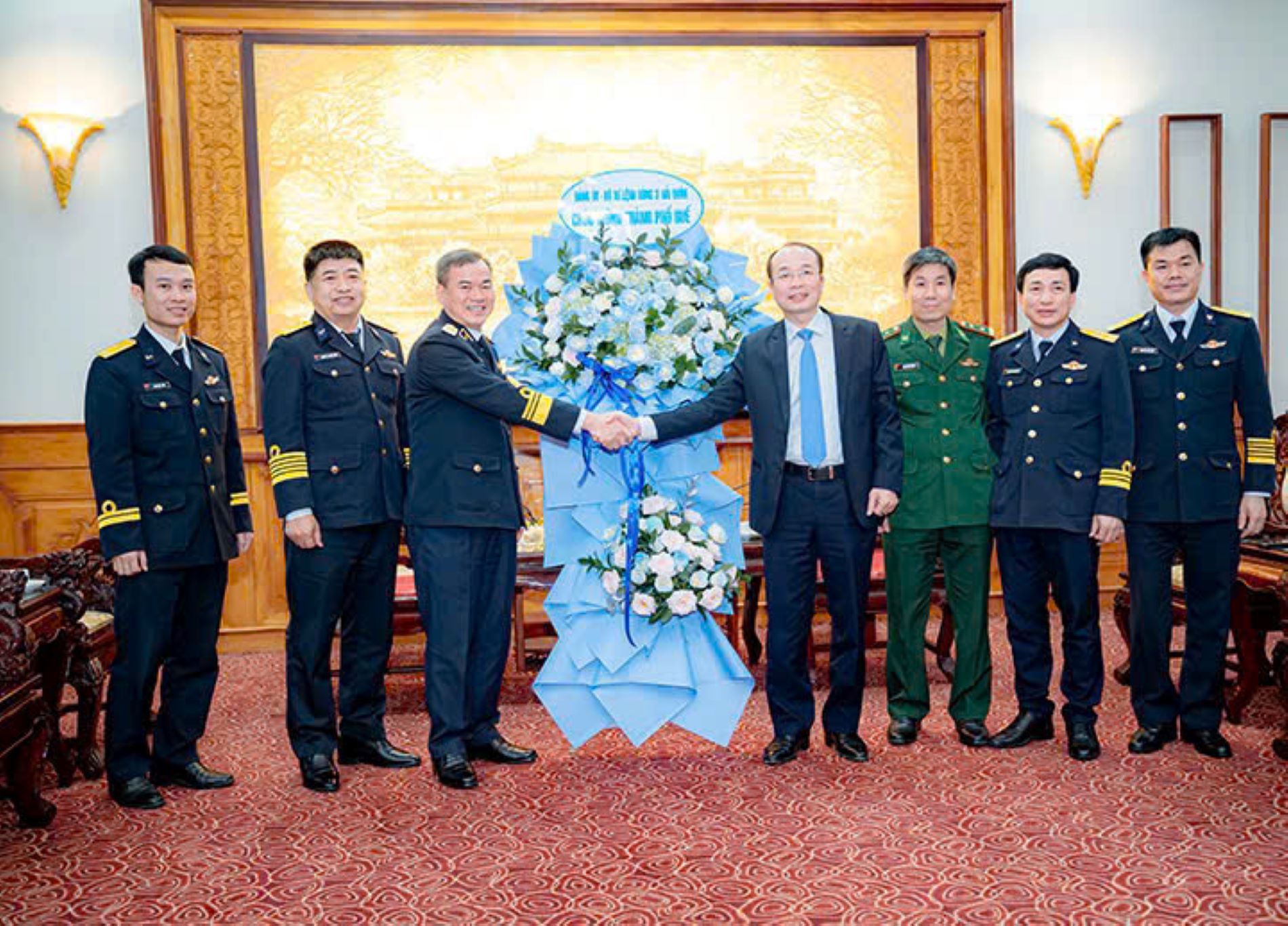 Chuẩn Đô đốc Nguyễn Đăng Tiến tặng hoa chúc mừng TP. Huế trực thuộc Trung ương