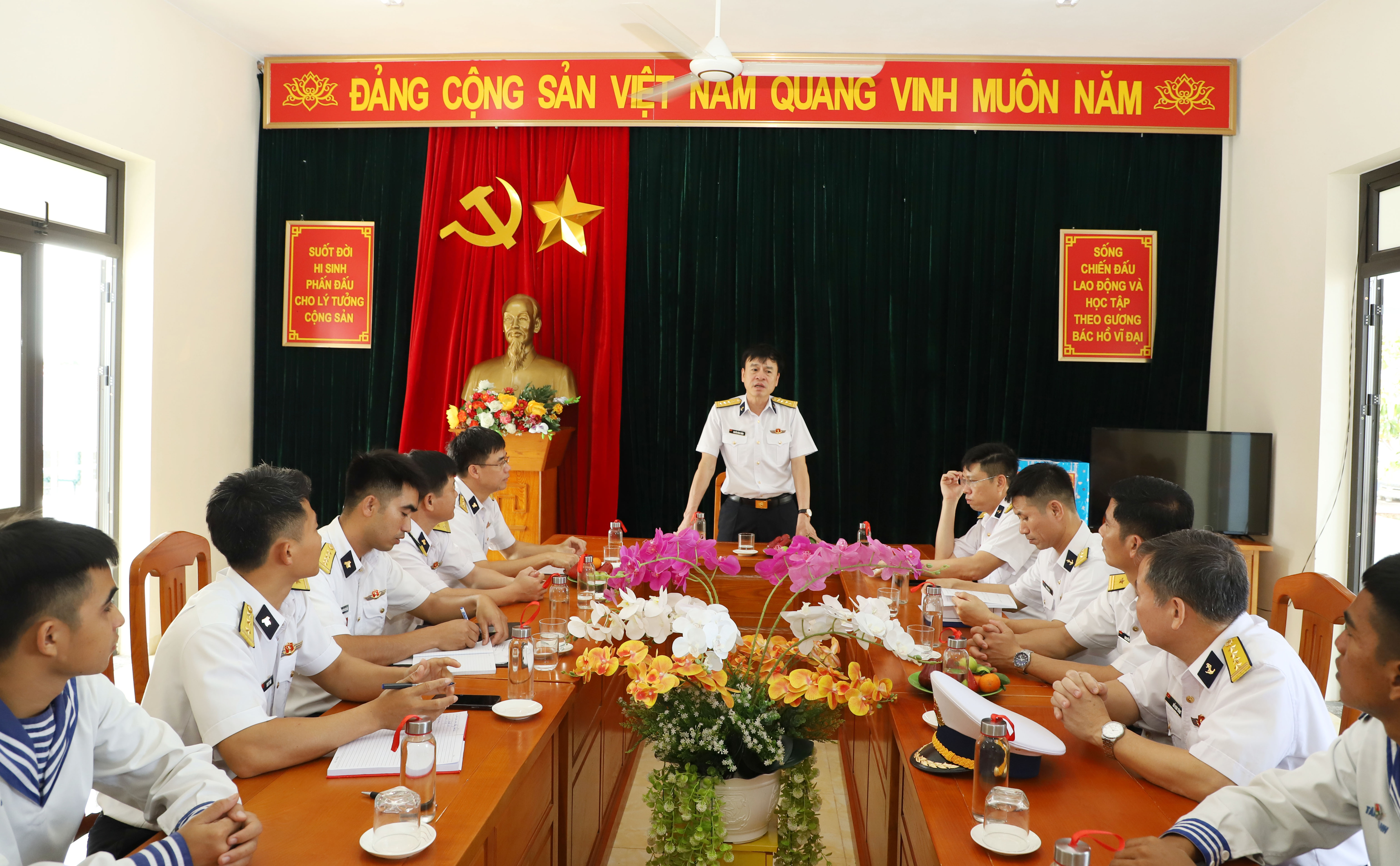 Đồng chí Phó Chủ nhiệm Chính trị Hải quân đã ân cần thăm hỏi, động viên cán bộ, chiến sĩ đơn vị yên tâm công tác, xác định tốt nhiệm vụ chính trị được giao, duy trì nghiêm chế độ trực SSCĐ, không để sót lọt mục tiêu, nắm chắc, quản lý tốt vùng biển, kịp thời tham mưu, chuẩn bị phương tiện, lực lượng, xử trí tốt mọi tình huống.