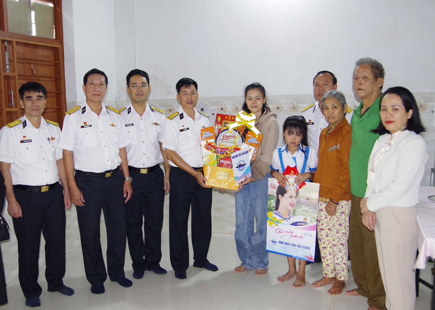 Nhân dịp này, các đơn vị trực thuộc Cục Hậu cần - Kỹ thuật Hải quân đến thăm, tặng quà các con ngư dân được đơn vị nhận đỡ đầu trên địa bàn thị xã Đông Hòa và huyện Tuy An.