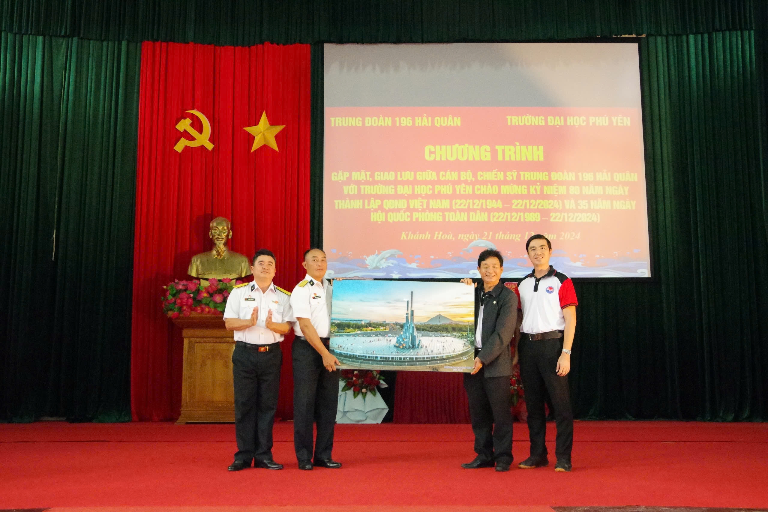 Sáng 21/12, tại TP. Cam Ranh, tỉnh Khánh Hoà, Trung đoàn 196 Hải quân phối hợp với trường Đại học Phú Yên tổ chức chương trình giao lưu chào mừng kỷ niệm 80 năm Ngày thành lập Quân đội nhân dân Việt Nam.