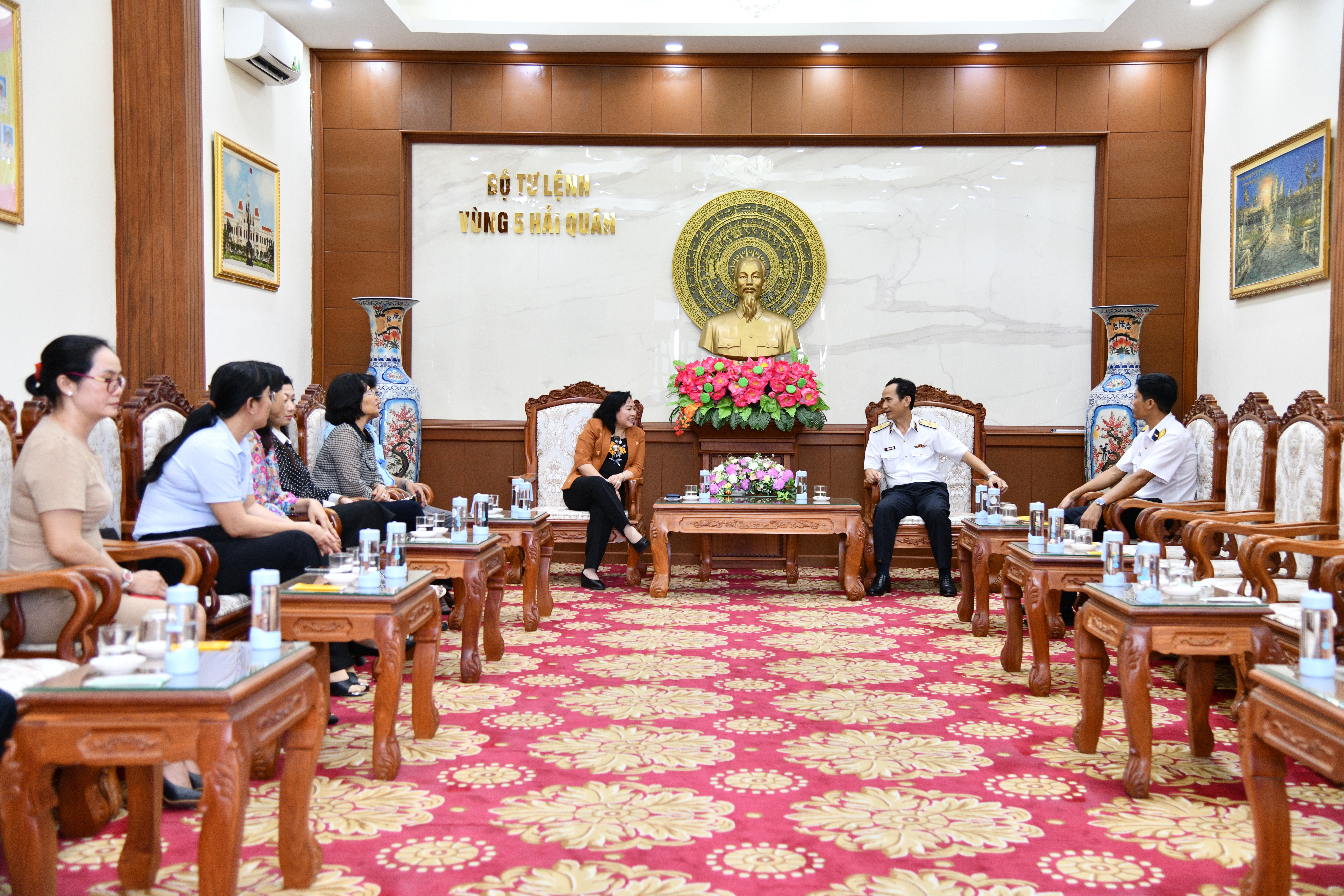 Chiều 13/2, tại TP. Phú Quốc, tỉnh Kiên Giang, đoàn công tác huyện Kiên Lương (Kiên Giang) do đồng chí Trần Thu Hồng, Tỉnh ủy viên, Bí thư Huyện ủy làm trường đoàn đã đến thăm, chào xã giao Bộ Tư lệnh Vùng 5 Hải quân. Chuẩn Đô đốc Nguyễn Hữu Thoan, Bí thư Đảng ủy, Chính ủy Vùng chủ trì tiếp đoàn.