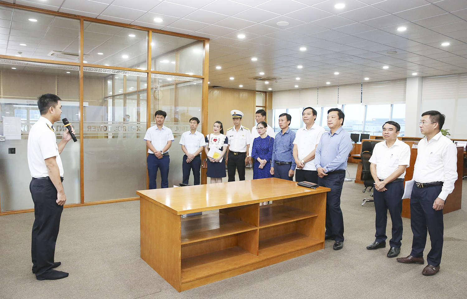 Sau khi tham quan hoạt động làm hàng tại Trung tâm điều hành sản xuất và Trung tâm An ninh tại cảng Tân cảng Cát Lái, đoàn công tác có buổi làm việc với lãnh đạo Tổng công ty Tân cảng Sài Gòn.