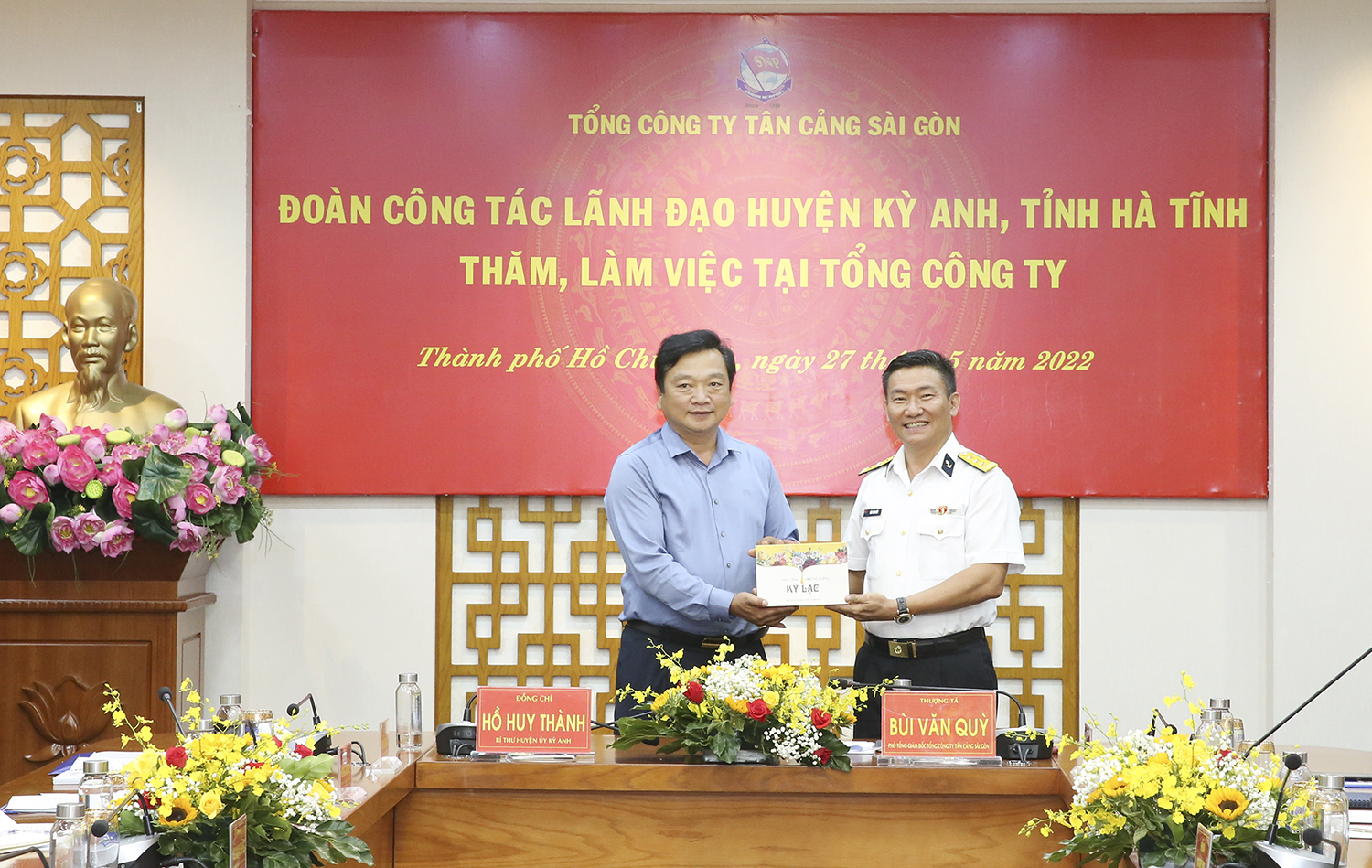 Chiều 27/5, tại TP. Hồ Chí Minh, đoàn công tác lãnh đạo huyện Kỳ Anh, tỉnh Hà Tĩnh do đồng chí Hồ Huy Thành, Bí thư Huyện ủy Kỳ Anh làm trưởng đoàn đến thăm và làm việc tại Tổng công ty Tân cảng Sài Gòn. Thượng tá Bùi Văn Quỳ, Phó Tổng giám đốc chủ trì tiếp đoàn.