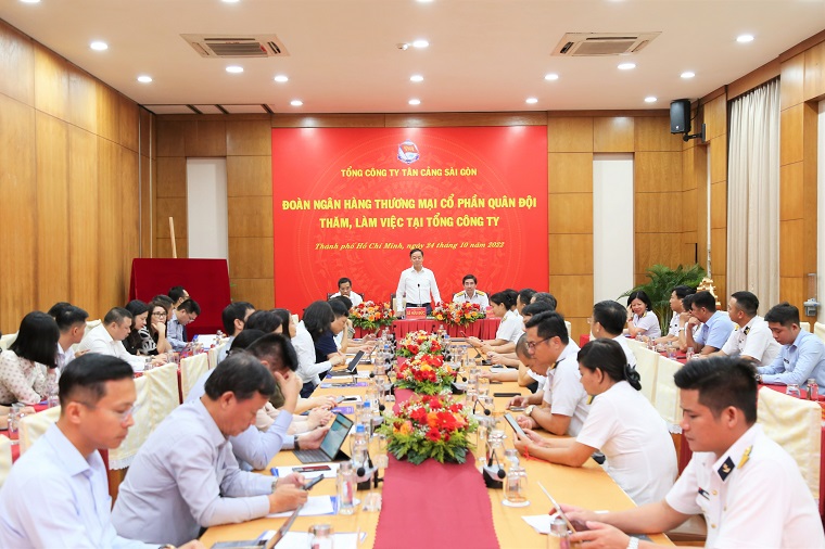 Tại buổi làm việc, Đại tá Ngô Minh Thuấn, Tổng Giám đốc Tân cảng Sài Gòn đã thông tin đến đoàn công tác về kết quả thực hiện nhiệm vụ quân sự, quốc phòng và sản xuất kinh doanh của Tổng công ty thời gian qua đồng thời mong muốn trong thời gian tới tiếp tục nhận được sự hỗ trợ, hợp tác từ Ngân hàng TMCP Quân đội về chiến lược chuyển đổi số trong lĩnh vực công nghệ thông tin, hỗ trợ cung cấp tín dụng cho Tổng công ty…