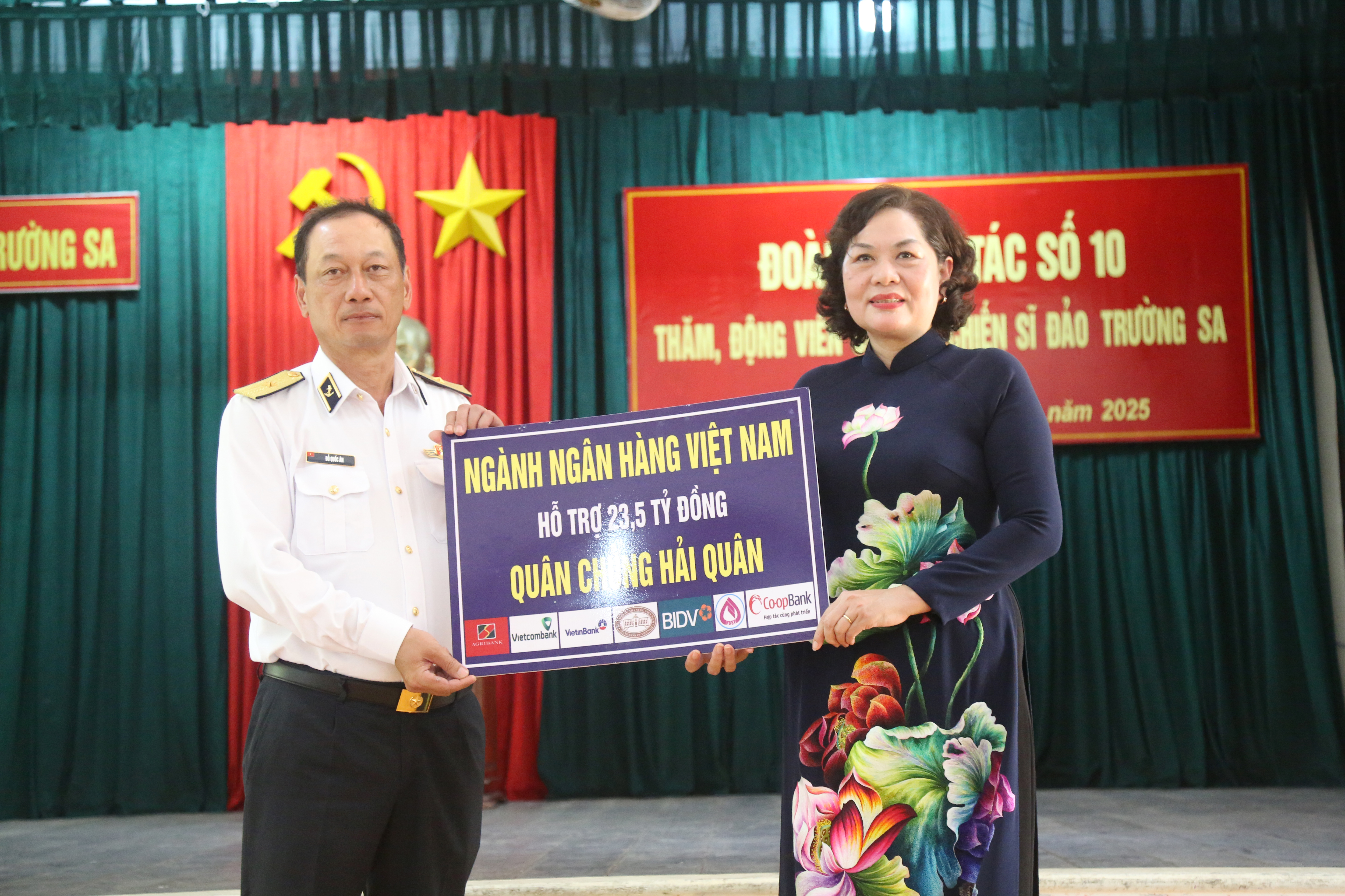 Tại đảo Trường Sa, Đoàn công tác số 10 vinh dự đón đồng chí Nguyễn Thị Hồng, Ủy viên Trung ương Đảng, Thống đốc Ngân hàng Nhà nước Việt Nam và đồng chí Chuẩn Đô đốc Đỗ Văn Yên, Phó Chính ủy Quân chủng Hải quân cùng tham gia hoạt động.