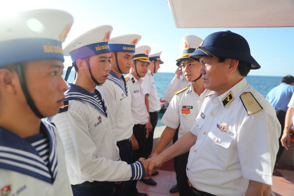 Chuẩn Đô đốc Phạm Văn Luyện động viên chiến sĩ đảo Đá Đông B