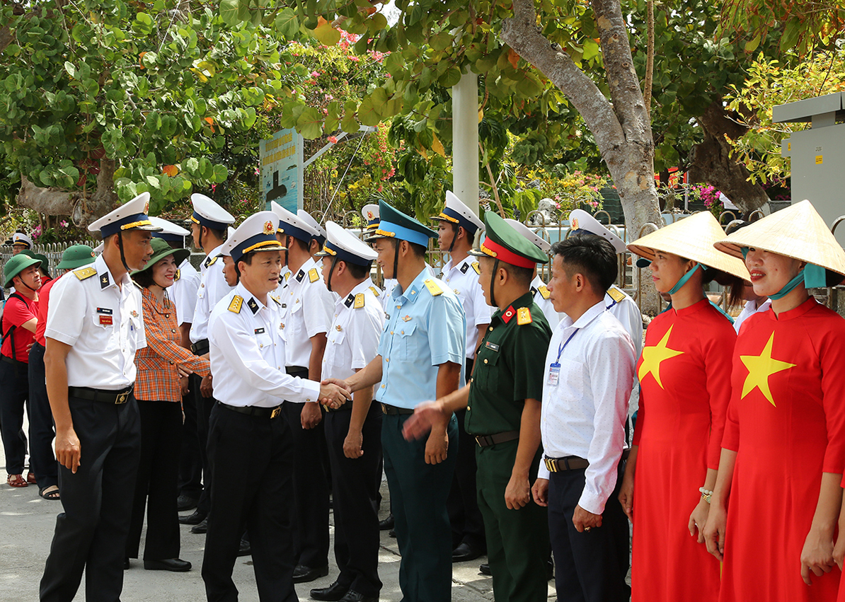 Đoàn đã dự lễ chào cờ tại đảo Song Tử Tây, mít tinh kỷ niệm 49 năm Ngày giải phóng miền Nam, thống nhất đất nước (30/4/1975 - 30/4/2024); dâng hương tại Đài liệt sĩ, Nhà tưởng niệm Chủ tịch Hồ Chí Minh trên đảo Trường Sa; trồng cây trên các đảo; tổ chức tưởng niệm cán bộ, chiến sĩ đã hy sinh vì nhiệm vụ bảo vệ chủ quyền biển, đảo của Tổ quốc; thắp hương, viếng các khu tâm linh, chùa trên các đảo.