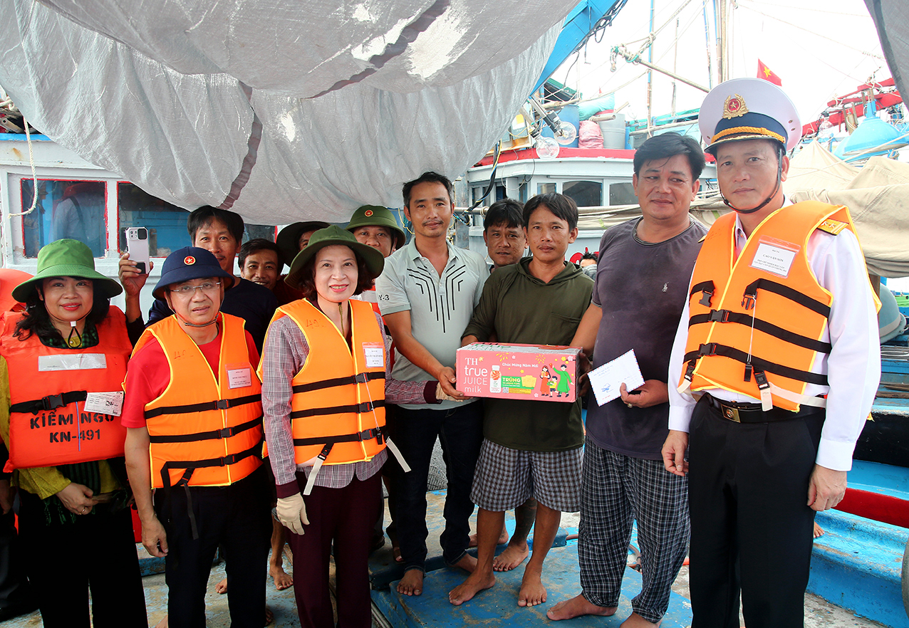 Đoàn công tác tặng quà các ngư dân trên các tàu cá
