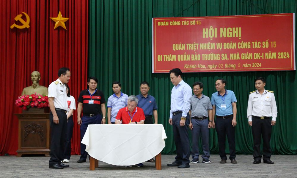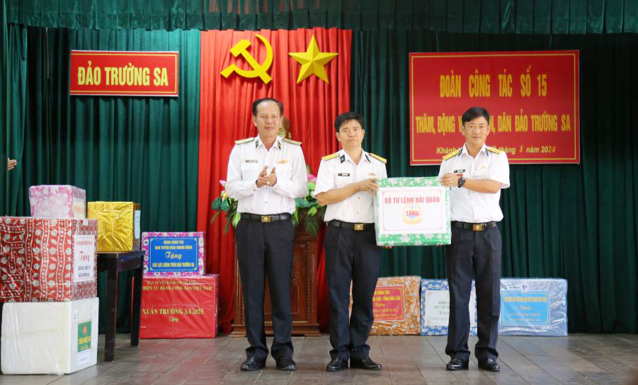 Đoàn công tác số 15 đã tới thăm, tặng quà, động viên cán bộ, chiến sĩ và nhân dân trên các đảo thuộc huyện đảo Trường Sa gồm: Song Tử Tây, Cô Lin, Sinh Tồn, Đá Đông A, Đá Tây A, Trường Sa và Nhà giàn 1/7 (Huyền Trân). Tại các điểm đến, đoàn được nghe báo cáo về tình hình sinh hoạt, đời sống của người dân; kết quả thực hiện nhiệm vụ bảo vệ chủ quyền biển, đảo của cán bộ, chiến sĩ. Đoàn đã tặng quà, giao lưu văn nghệ với cán bộ, chiến sĩ và người dân trên các đảo tiền tiêu của Tổ quốc.