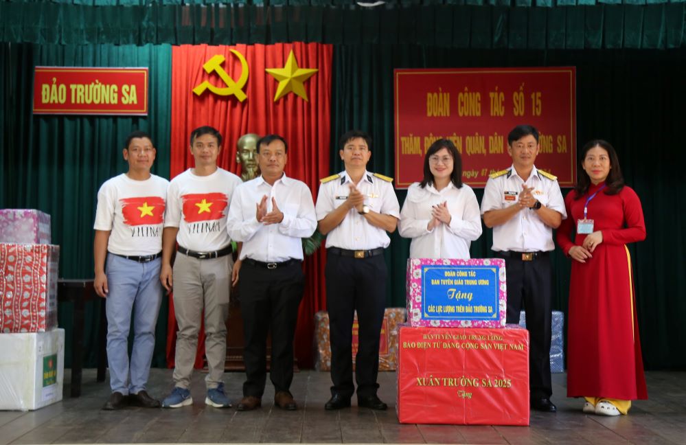 Đoàn đại biểu Ban Tuyên giáo Trung ương tặng quà cán bộ, chiến sĩ đảo Trường Sa