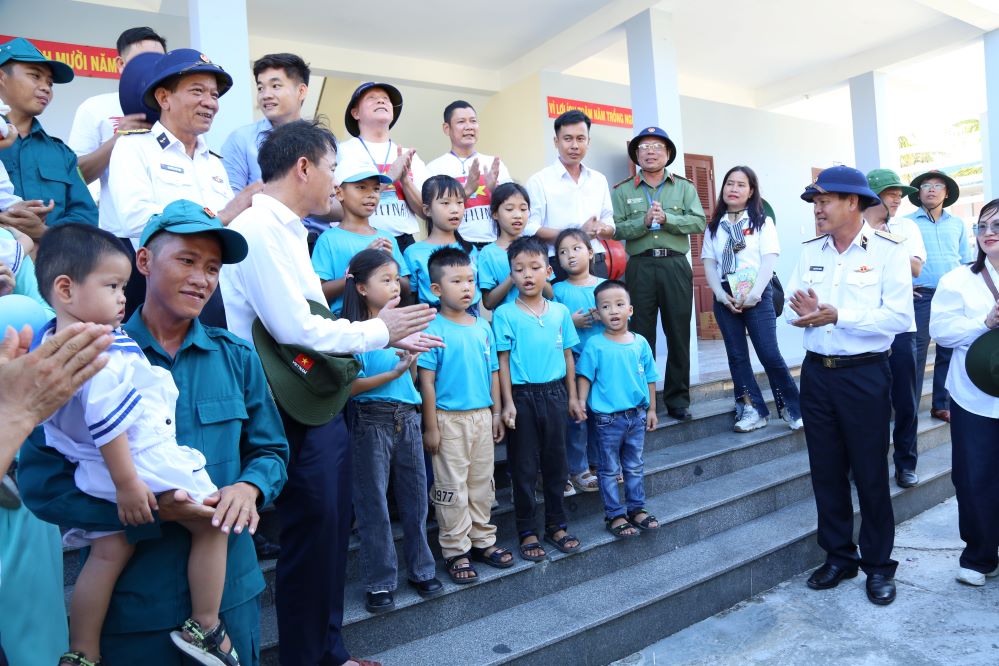 Các đại biểu thăm hỏi các cháu học sinh trên đảo Song Tử Tây