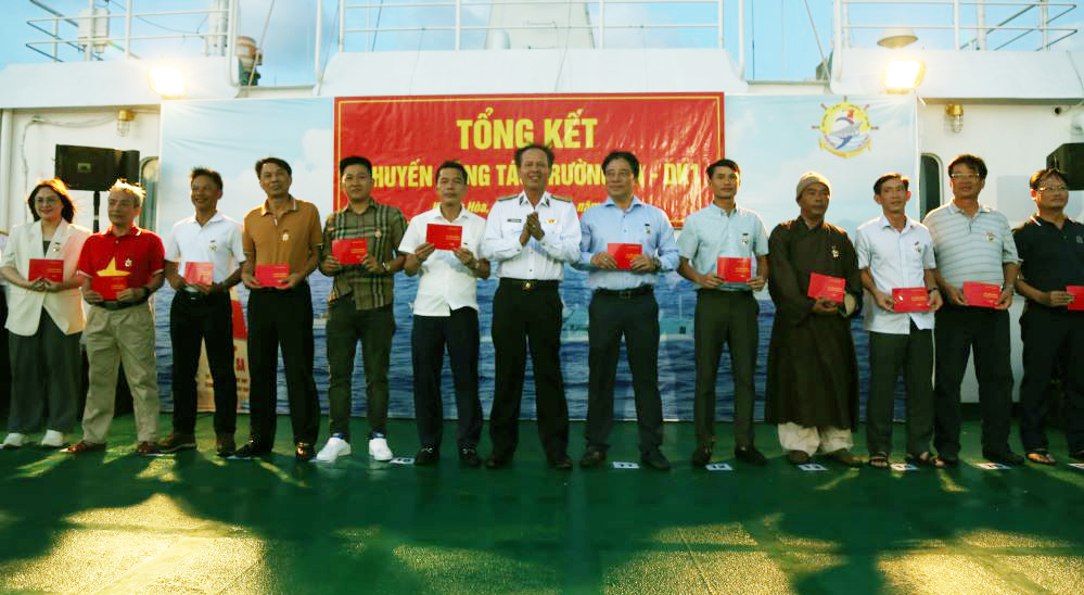 Nhân dịp này, Quân chủng Hải quân đã trao Kỷ niệm chương Vì sự nghiệp bảo vệ chủ quyền biển, đảo và Huy hiệu Chiến sĩ Trường Sa cho các đại biểu tham gia đoàn công tác.