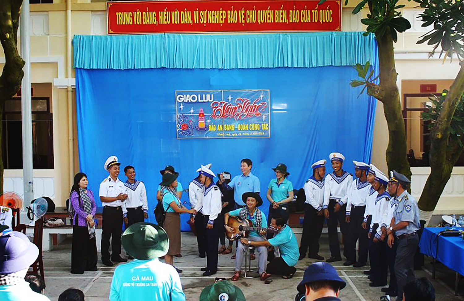 Các đại biểu giao lưu văn nghệ với cán bộ, chiến sĩ đảo An Bang