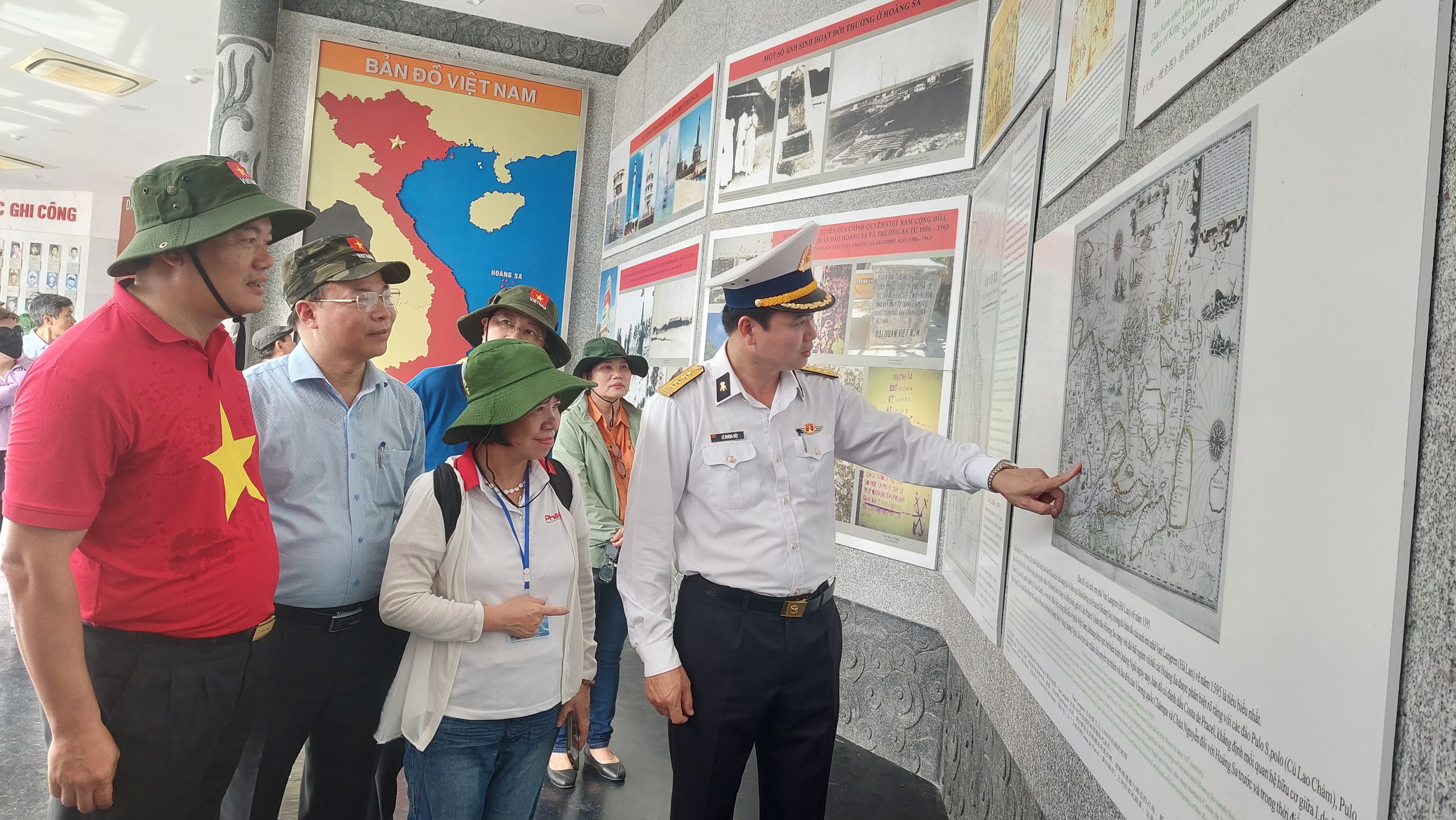 Đại biểu tham quan khu trưng bày hiện vật lịch sử tại Đài tưởng niệm Chiến sĩ Gạc Ma
