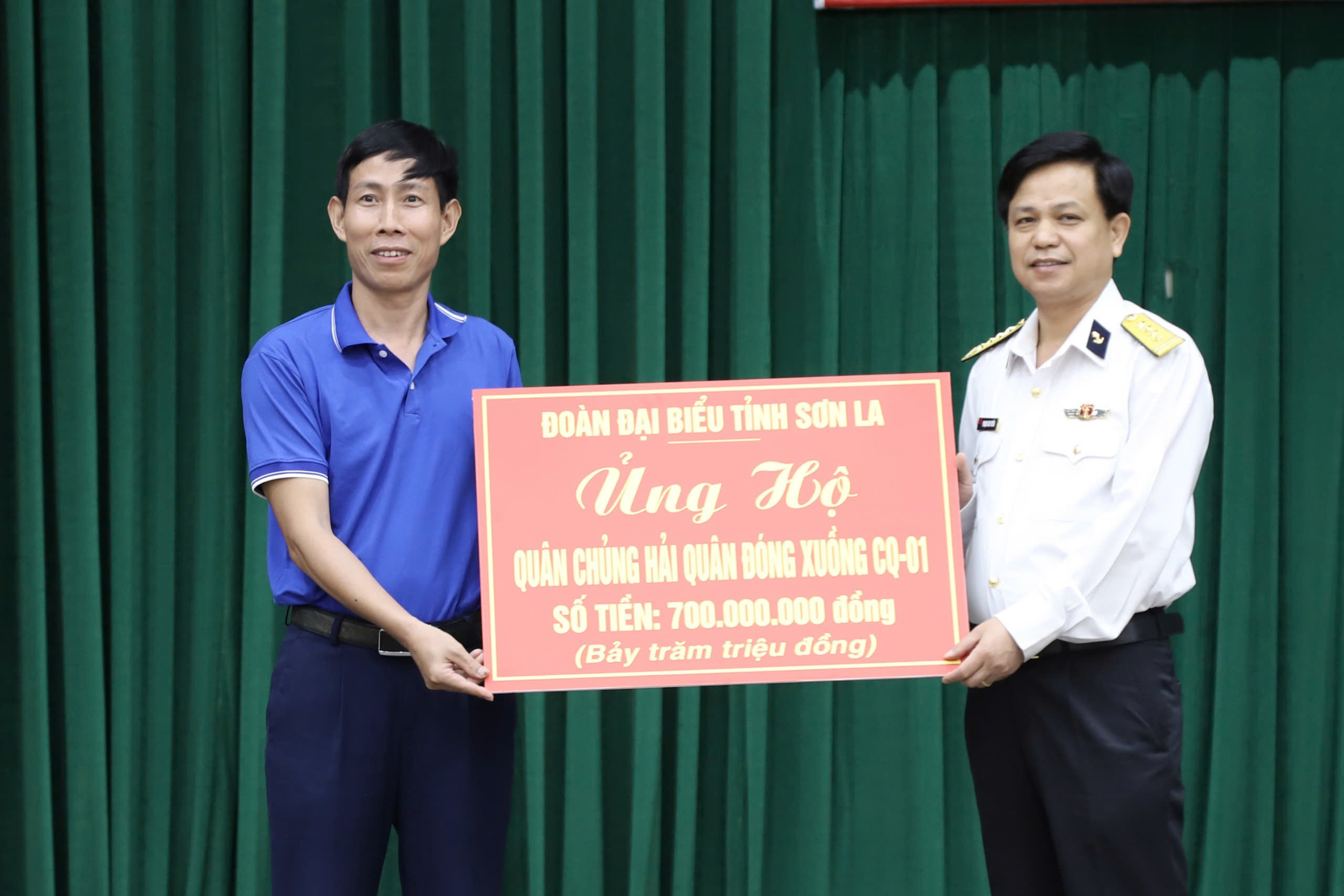Đồng chí Lưu Minh Quân, Ủy viên Ban Thường vụ Tỉnh uỷ Sơn La, Phó Bí thư Thường trực Đảng ủy các cơ quan Đảng trao quà ủng hộ cho Quân chủng Hải quân