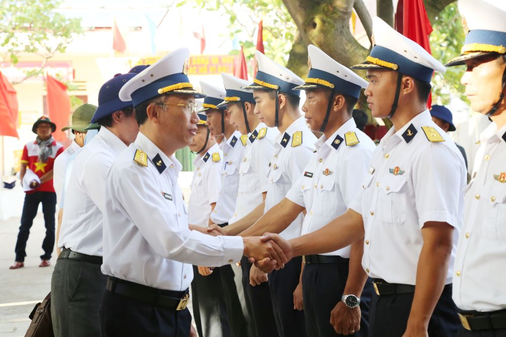 Nhân dịp này, Quân chủng Hải quân đã trao tặng các đại biểu tham gia đoàn công tác Kỷ niệm chương Vì sự nghiệp bảo vệ chủ quyền biển, đảo và Huy hiệu Chiến sĩ Trường Sa.