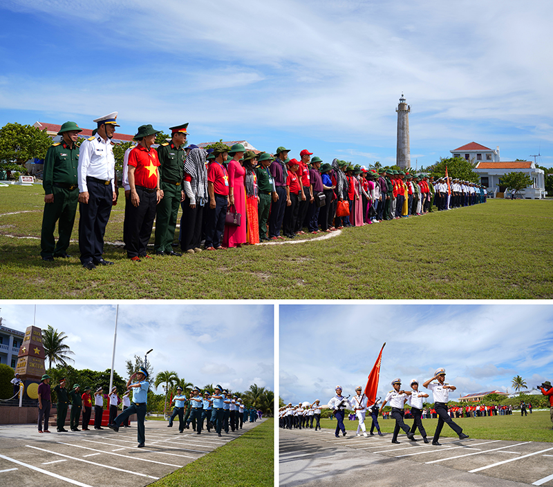Đoàn tham dự buổi chào cờ, duyệt đội ngũ trên đảo Song Tử Tây