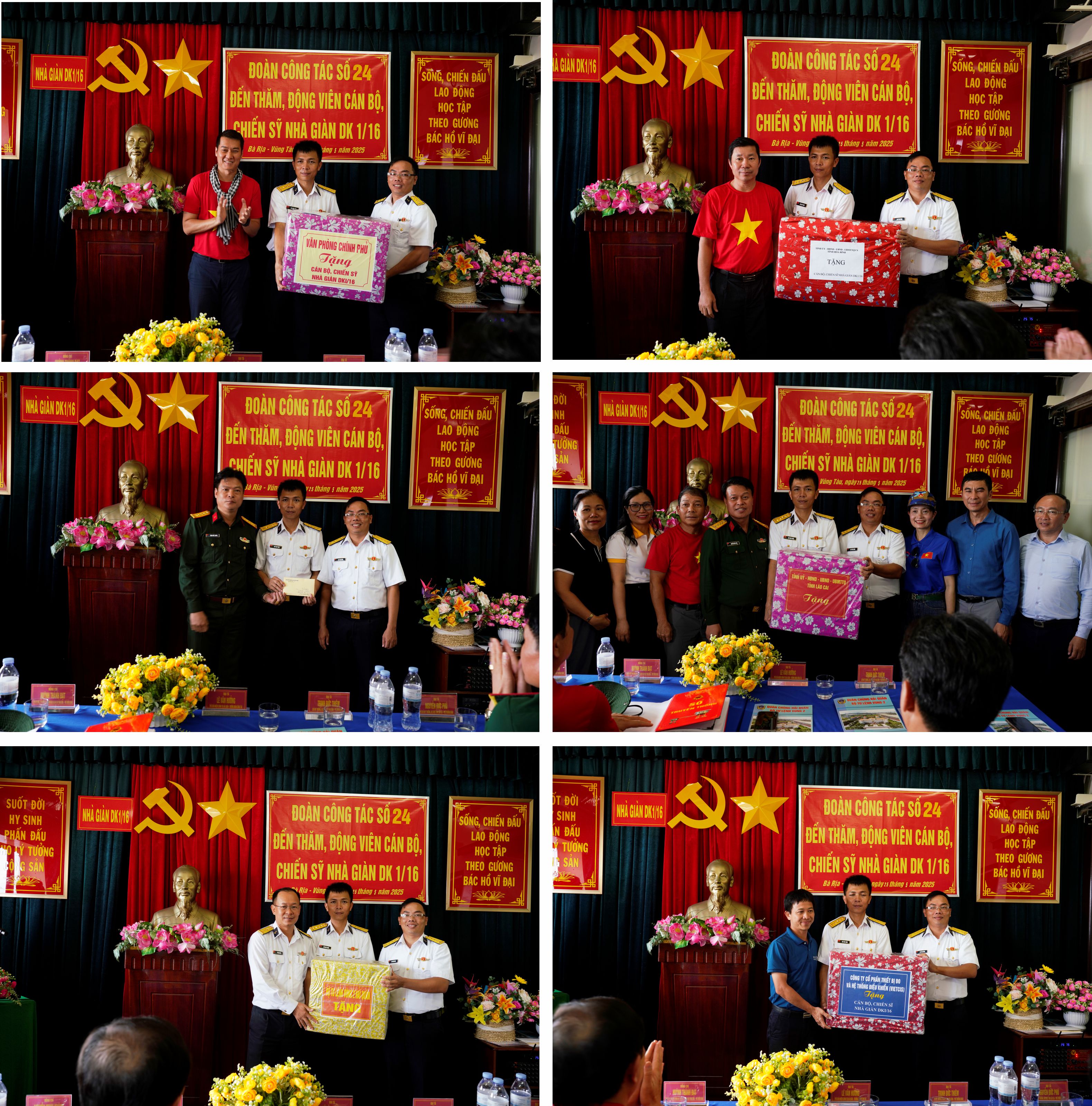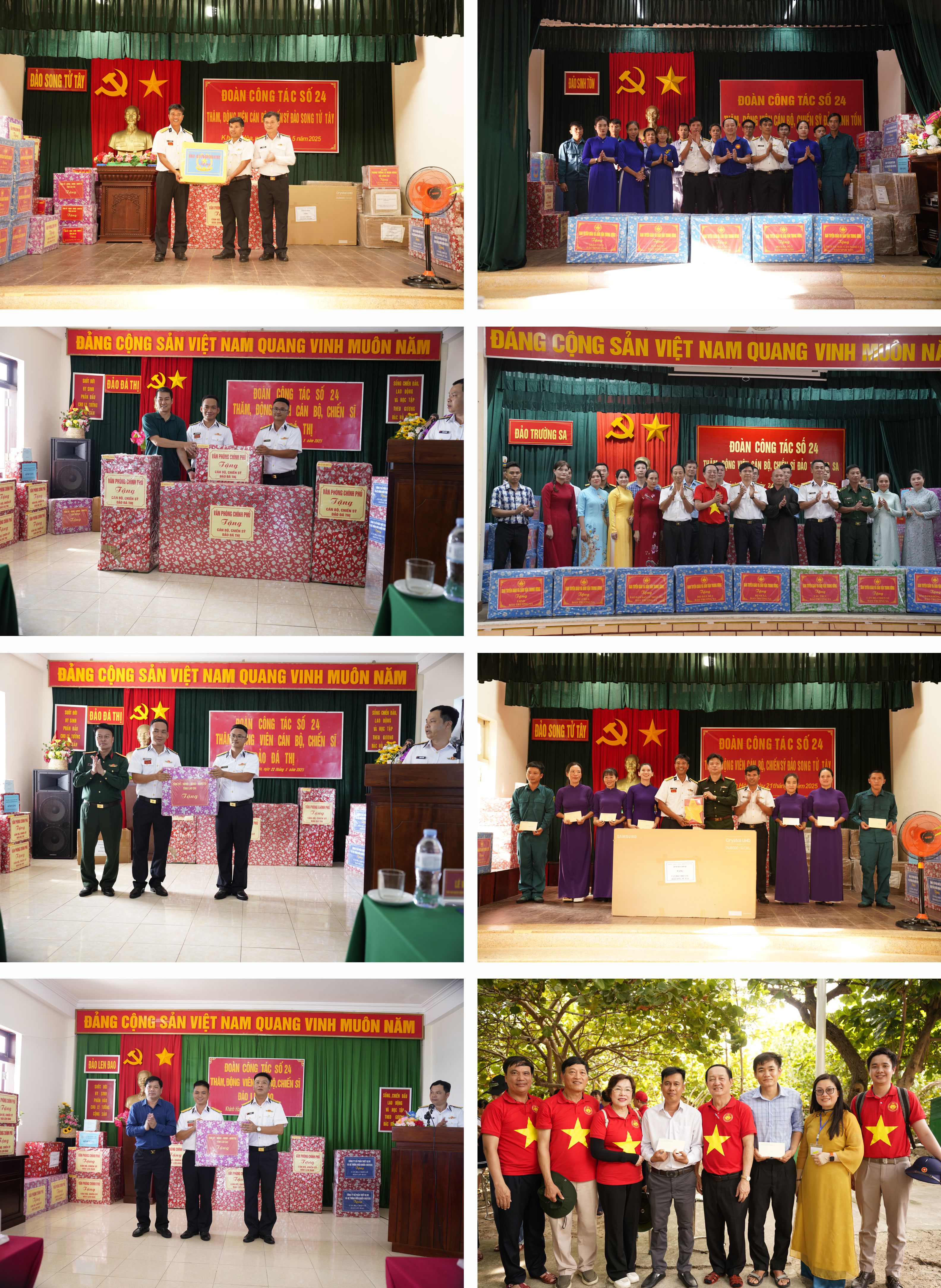 Tại các điểm đến, đoàn công tác đều có buổi làm việc, thăm hỏi, động viên, tặng quà, giao lưu văn nghệ với quân, dân và các lực lượng trên các đảo, nhà giàn.
