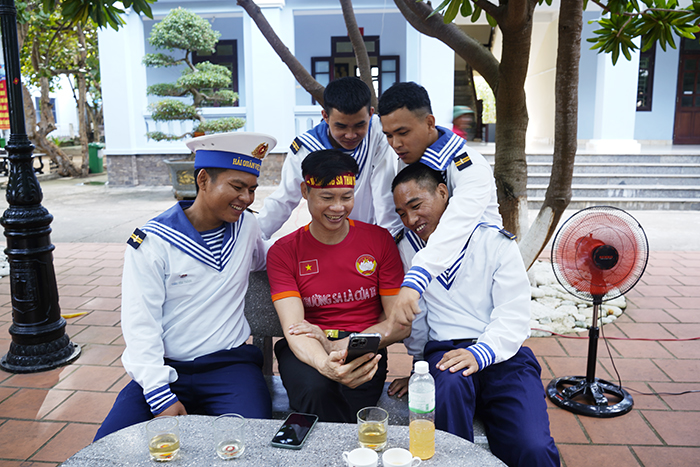 Thành viên đoàn công tác giao lưu với chiến sĩ trên đảo