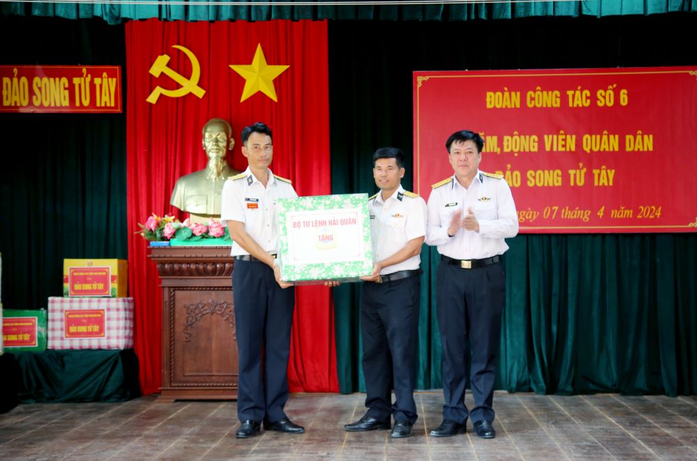 Đại tá Phạm Minh Tuấn trao quà của Quân chủng tặng cán bộ, chiến sĩ đảo Song Tử Tây