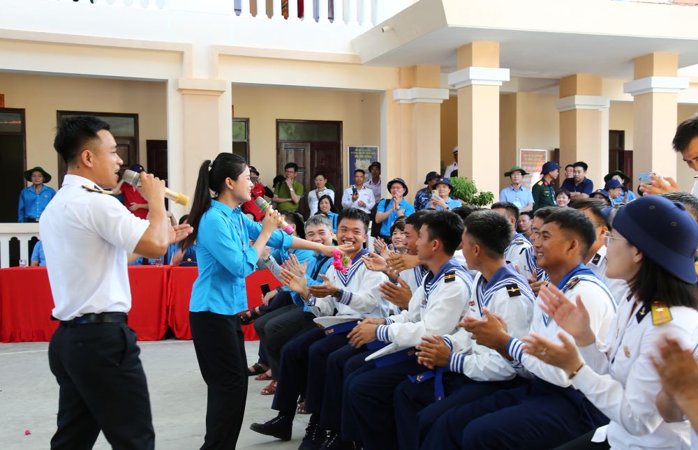 Vì điều kiện thời tiết bất lợi, sóng gió lớn, đoàn công tác đã không thể tổ chức đưa đại biểu lên thăm Nhà giàn DK1/11-Tư Chính trên thềm lục địa phía Nam của Tổ quốc mà chuyển quà tặng và giao lưu với cán bộ, chiến sĩ qua bộ đàm.