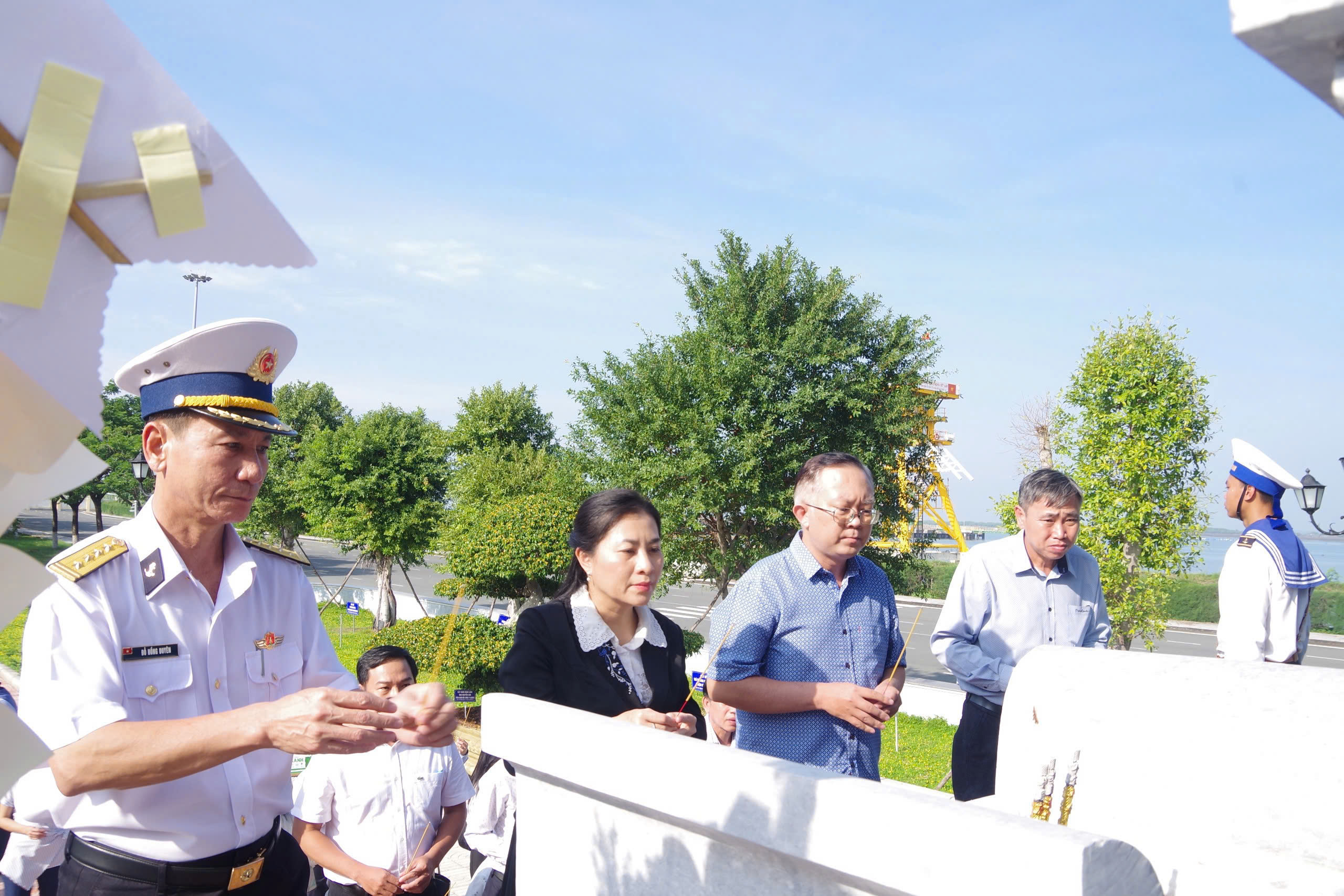 Gần 50 đại biểu của đoàn công tác cùng cán bộ, chiến sĩ Bộ Tư lệnh Vùng 2 đã dâng hương, dâng hoa tại Khuôn viên văn hóa Bộ Tư lệnh Vùng; tham quan khuôn viên đơn vị và mô hình Nhà giàn DK1.