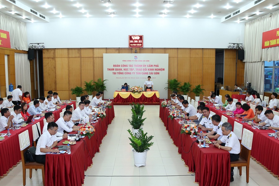 Đoàn công tác của Thành ủy Cẩm Phả và Tổng công ty Tân cảng Sài Gòn đã trao đổi, chia sẻ kinh nghiệm về các lĩnh vực: Lập quy hoạch, khai thác, vận hành, phát triển hệ thống cảng biển; nhu cầu dịch vụ logistics và khai thác cảng biển của Việt Nam đối với các doanh nghiệp nước ngoài; tiềm lực phát triển cảng biển và dịch vụ logistics của thành phố Cẩm Phả; hạ tầng giao thông, vị trí địa lý và các điều kiện kết nối giữa các địa phương, điều kiện tự nhiên về hàng hải, thu hút đầu tư, khai thác lợi thế, phát triển hệ thống cảng biển của thành phố Cẩm Phả trong tương lai.