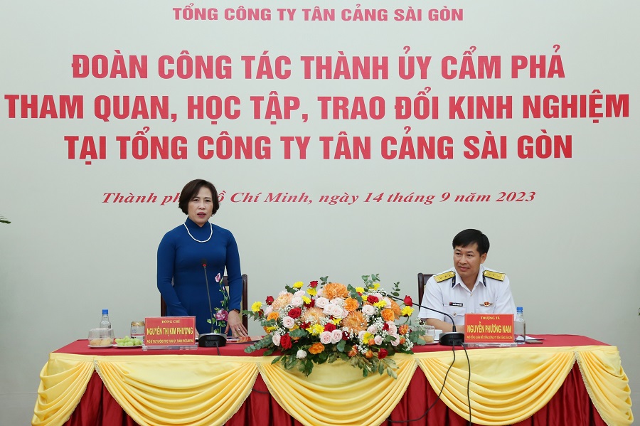 Chiều 14/9, tại TP. Hồ Chí Minh, đoàn công tác của Thành ủy Cẩm Phả (tỉnh Quảng Ninh) do đồng chí Nguyễn Thị Kim Phượng, Phó Bí thư Thường trực Thành ủy làm trưởng đoàn đến tham quan, trao đổi, học tập kinh nghiệm phát triển kinh tế biển tại cảng Tân cảng Cát Lái thuộc Tổng công ty Tân cảng Sài Gòn. Thượng tá Nguyễn Phương Nam, Phó Tổng giám đốc Tổng công ty Tân cảng Sài Gòn chủ trì tiếp đoàn.