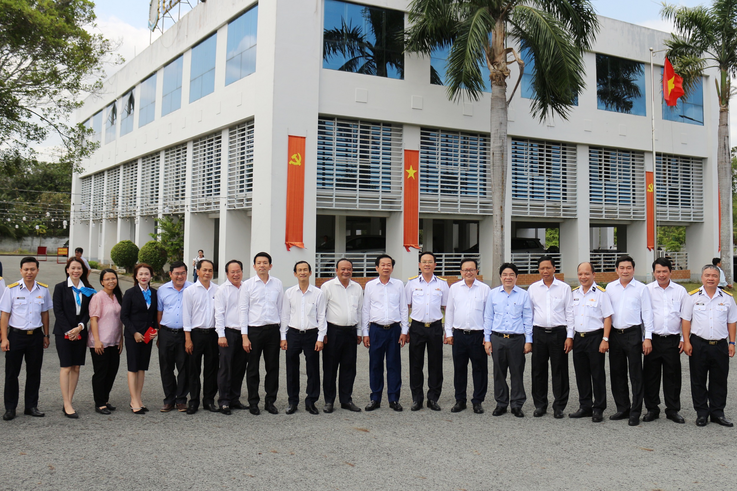 Đoàn công tác chụp ảnh lưu niệm với cán bộ, người lao động Chi nhánh Tân cảng Đồng bằng sông Cửu Long