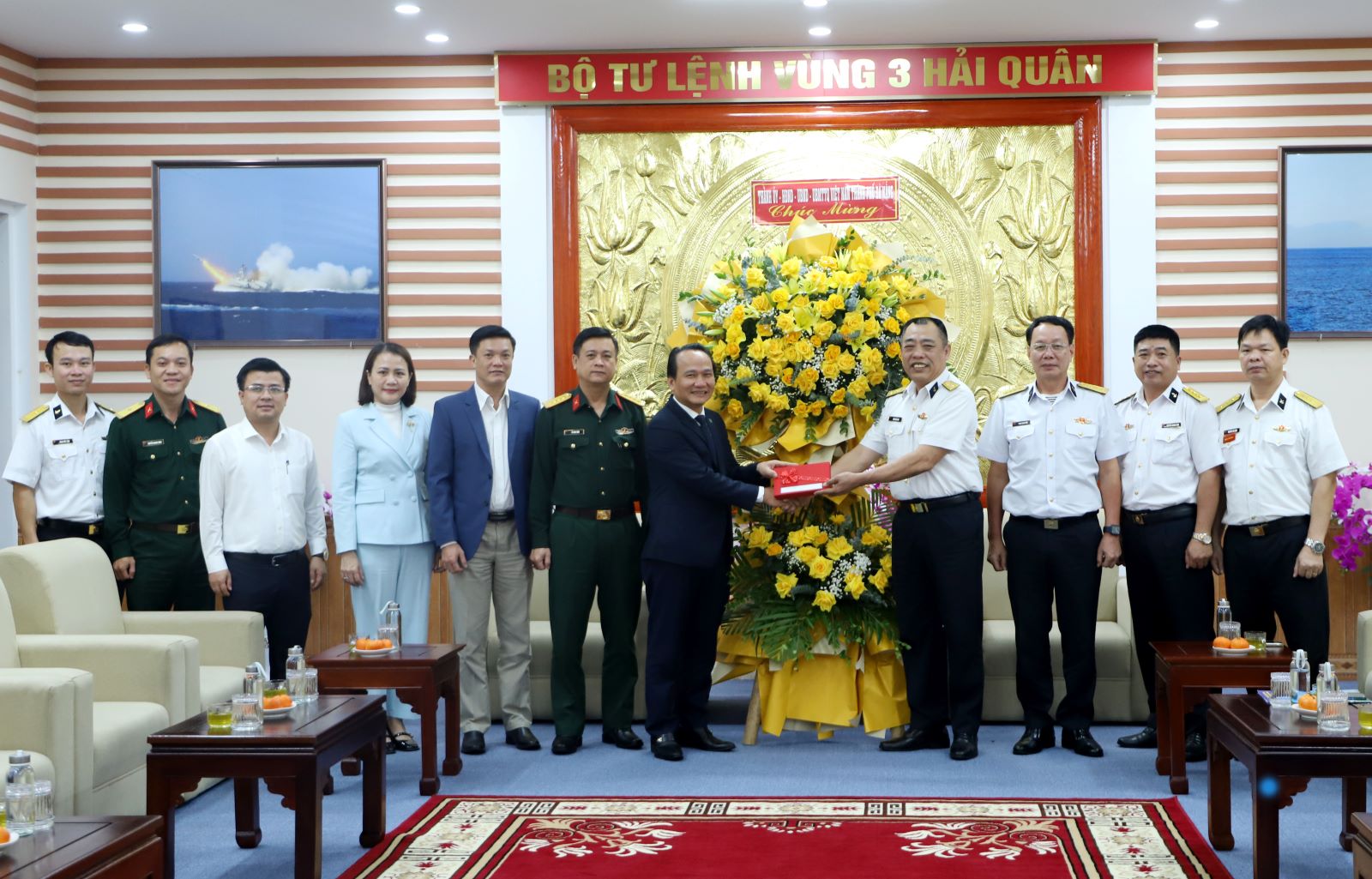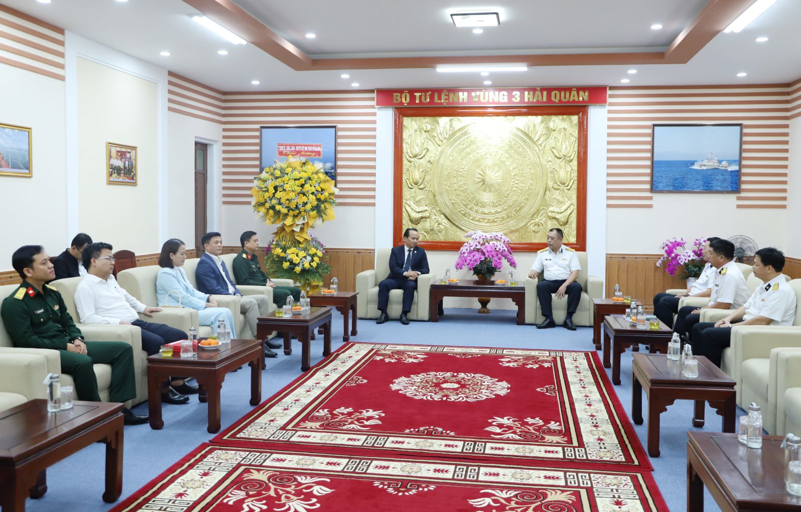 Đồng chí Phó Bí thư Thường trực Thành ủy ghi nhận, cảm ơn những đóng góp của cán bộ, chiến sĩ Vùng 3 Hải quân trong phối hợp xây dựng nền quốc phòng an ninh, giúp đỡ nhân dân phòng chống, khắc phục hậu quả thiên tai, huấn luyện hải đội dân quân thường trực, hỗ trợ ngư dân vươn khơi, bám biển và hoạt động đỡ đầu con ngư dân trên địa bàn...