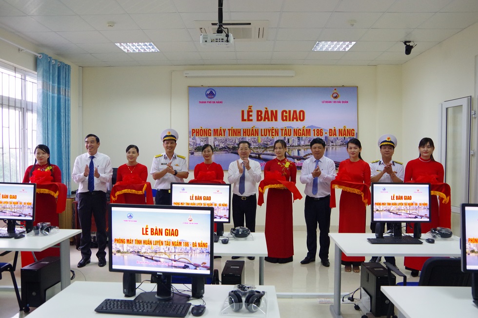 Nhân dịp này, đoàn công tác Thành ủy Đà Nẵng đã đến thăm cán bộ, thủy thủ và cắt băng khánh thành, bàn giao phòng máy tính huấn luyện tặng Tàu ngầm 186-Đà Nẵng.