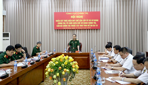 Chiều 13-5, tại Hải Phòng, đoàn công tác Tổng cục Chính trị Quân đội nhân dân Việt Nam do Thiếu tướng Nguyễn Anh Tuấn, Phó Cục trưởng Cục Tổ chức làm trưởng đoàn đã đến khảo sát kết quả thực hiện các qui chế của cấp ủy, cơ quan chính trị; tổ chức biên chế cơ quan chính trị, cán bộ chính trị thuộc các kho theo Đề án KA-10. Chuẩn Đô đốc Đoàn Văn Chiều, Chủ nhiệm Chính trị Hải quân cùng đại diện các cơ quan Cục Chính trị làm việc với đoàn.