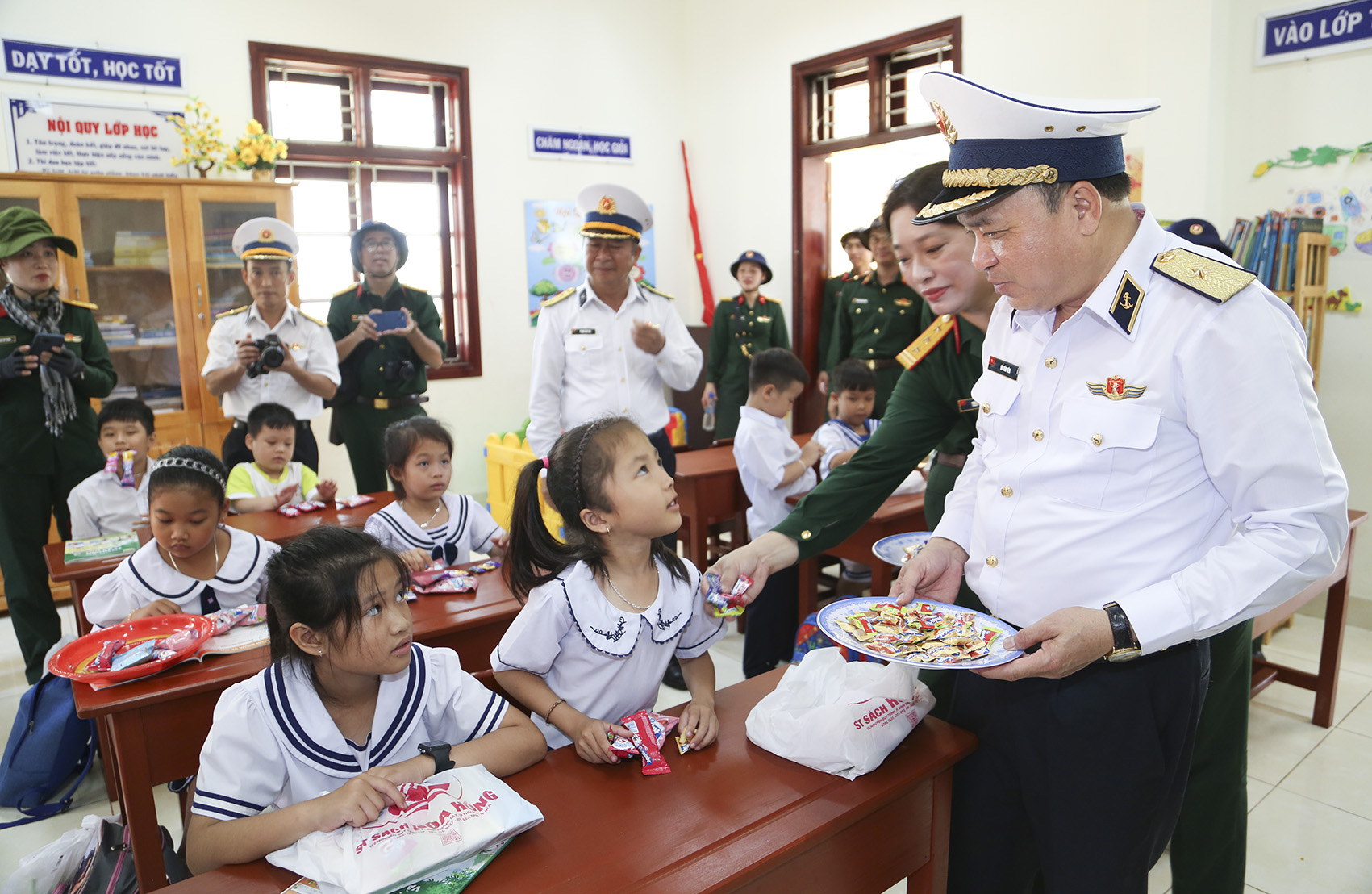 Đại diện chỉ huy các cơ quan, đơn vị Quân đội tham gia đoàn công tác cũng trực tiếp gửi những phần quà ý nghĩa, động viên cán bộ, chiến sĩ, nhân dân và các lực lượng quyết tâm bảo vệ vững chắc chủ quyền biển đảo và thềm lục địa thiêng liêng của Tổ quốc.