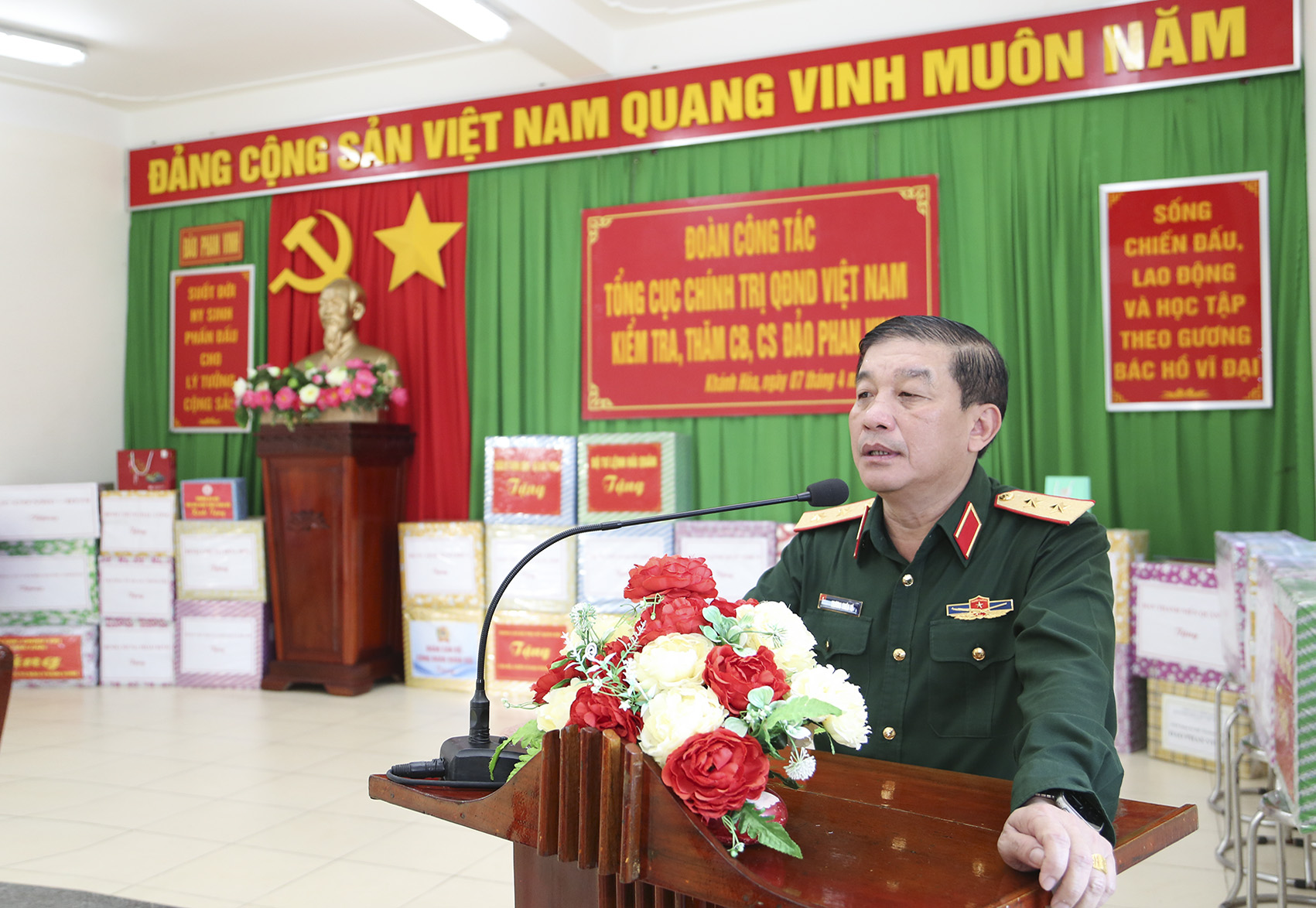 Trung tướng Trương Thiên Tô phát biểu động viên cán bộ, chiến sĩ đảo Phan Vinh A