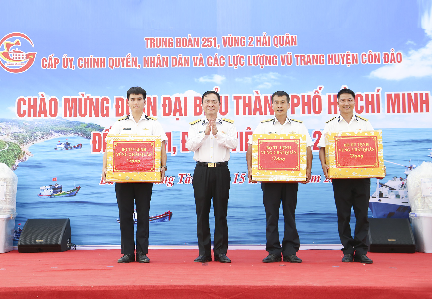 Đại tá Lê Bá Quân, Tư lệnh Vùng 2 trao quà tặng các lực lượng tại Côn Đảo