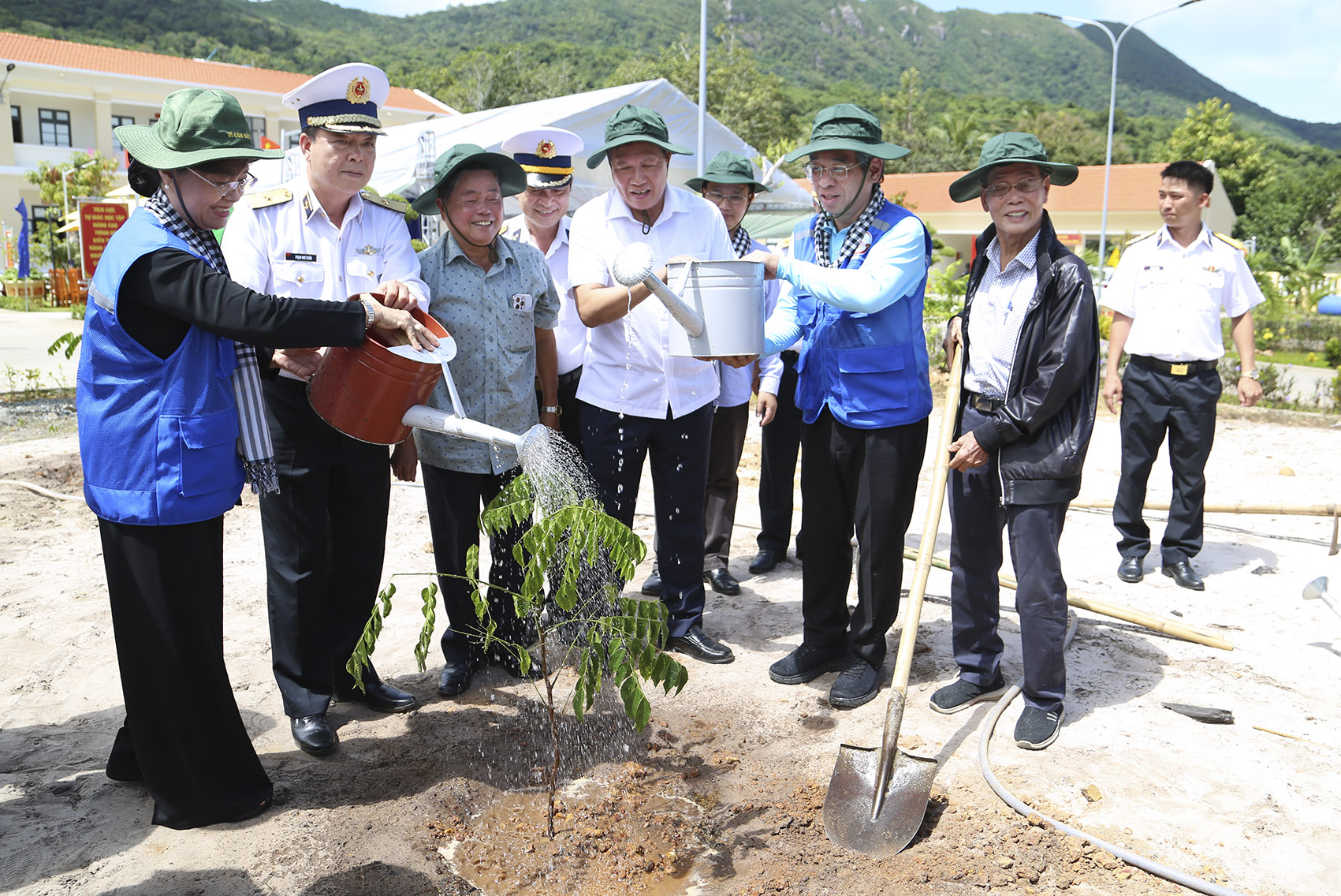 Các đại biểu trồng cây lưu niệm tại Trạm ra đa 590