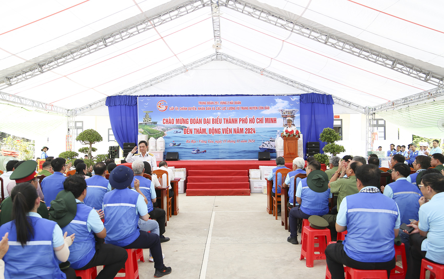 Phát biểu tại buổi làm việc, Đại úy Phạm Văn Thân, Trạm trưởng Trạm ra đa 590 cho biết: Thời gian qua, đơn vị luôn nhận được sự quan tâm, lãnh đạo, chỉ đạo, giúp đỡ của lãnh đạo địa phương, lực lượng vũ trang trên đảo, đặc biệt là sự quan tâm, động viên, hỗ trợ của Đảng bộ, chính quyền và nhân dân TP. Hồ Chí Minh. Cán bộ, chiến sĩ luôn đoàn kết, thống nhất, yêu thương đùm bọc lẫn nhau, vượt qua khó khăn, phấn đấu hoàn thành tốt mọi nhiệm vụ được giao.