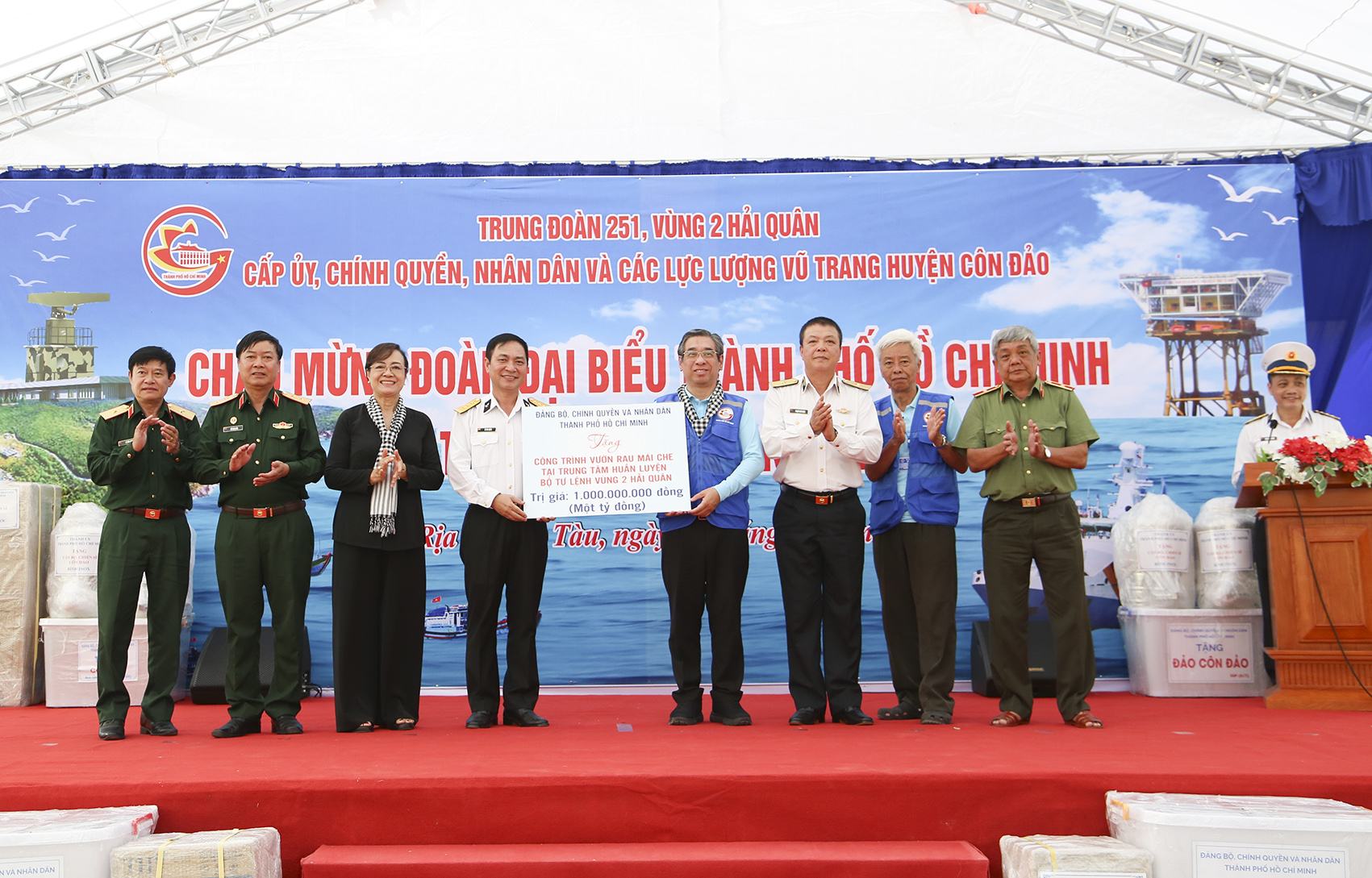 Sáng 15/11, trong hành trình đi thăm các đảo thuộc vùng biển Tây Nam và Nhà giàn DK1, đoàn đại biểu TP. Hồ Chí Minh và Quân chủng Hải quân do Chuẩn Đô đốc Phạm Như Xuân, Phó Tư lệnh Hải quân làm trưởng đoàn đã đến động viên và tặng nhiều công trình ý nghĩa tới cán bộ, chiến sĩ và các lực lượng đang công tác tại huyện Côn Đảo, tỉnh Bà Rịa – Vũng Tàu.