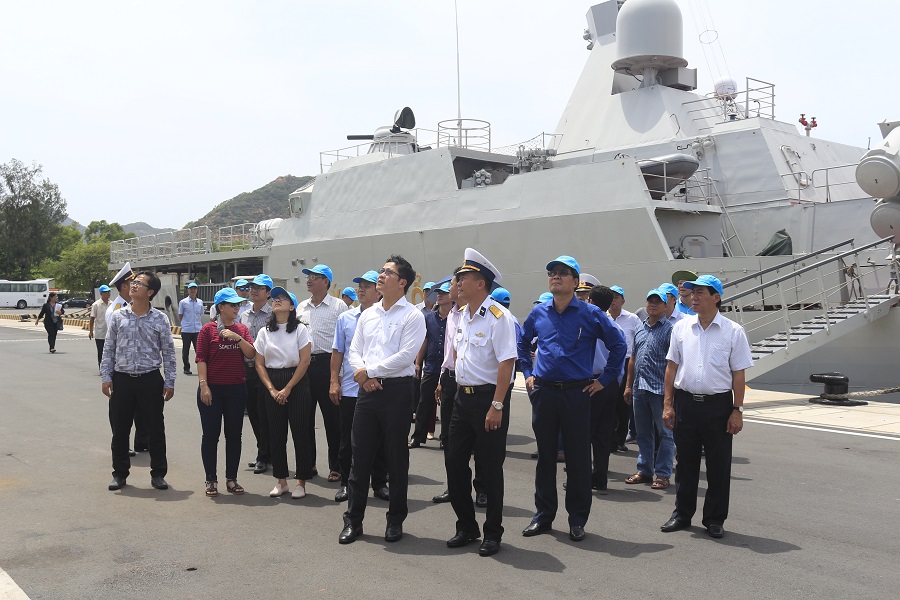 Tại Căn cứ quân sự Cam Ranh, đoàn đã được xem phim tư liệu giới thiệu truyền thống Vùng 4 Hải quân và Lữ đoàn 162; giao lưu, nói chuyện cùng cán bộ, chiến sĩ; tham quan doanh trại và Quân cảng Cam Ranh, nơi những chiến hạm hiện đại của Hải quân nhân dân Việt Nam luôn sẵn sàng vươn khơi bám biển, bảo vệ biển, đảo thiêng liêng của Tổ quốc.