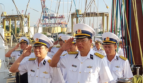 Tàu buồm 286 thực hiện tổ chức quốc tang, treo cờ rủ theo quy định.