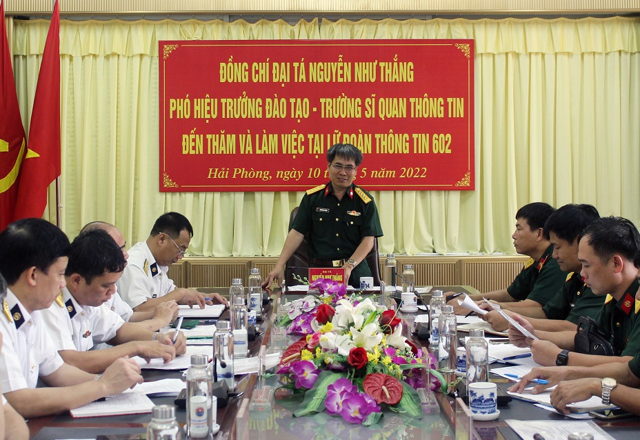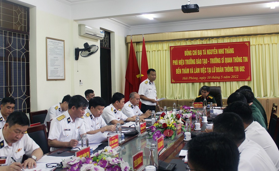 Ngày 10/5, đoàn công tác Trường Sĩ quan thông tin do Đại tá Nguyễn Như Thắng, Phó Hiệu trưởng làm trưởng đoàn đã tới kiểm tra học viên thực tập tốt nghiệp và khảo sát chuẩn đầu ra chương trình đào tạo sĩ quan chỉ huy tham mưu thông tin tại Lữ đoàn 602, Bộ Tham mưu Hải quân.