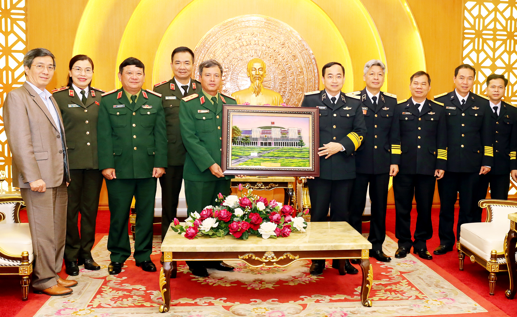 Đoàn công tác tặng Bộ Tư lệnh Hải quân bức tranh Tòa nhà Quốc hội