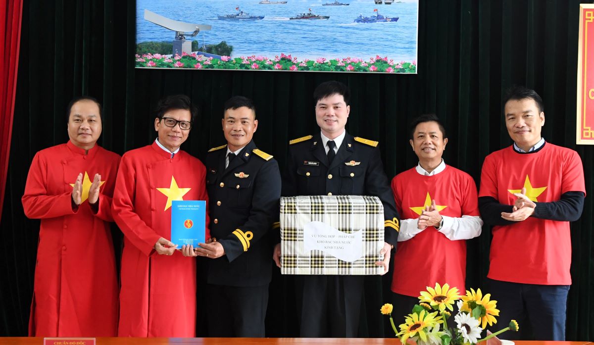 Lãnh đạo Vụ pháp chế-Tổng hợp Kho bạc Nhà nước Việt Nam tặng quà cán bộ, chiến sĩ Trạm 490