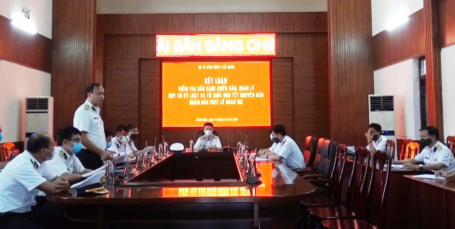 Sáng 13/1, tại thành phố Cam Ranh, tỉnh Khánh Hoà, đoàn công tác Bộ Tư lệnh Vùng 4 Hải quân do Thượng tá Nguyễn Hải Châu, Phó Tham mưu trưởng Vùng làm trưởng đoàn đã tiến hành kiểm tra công tác SSCĐ, quản lý duy trì kỷ luật và tổ chức đón Tết Nguyên đán Nhâm Dần 2022 tại Lữ đoàn 162.